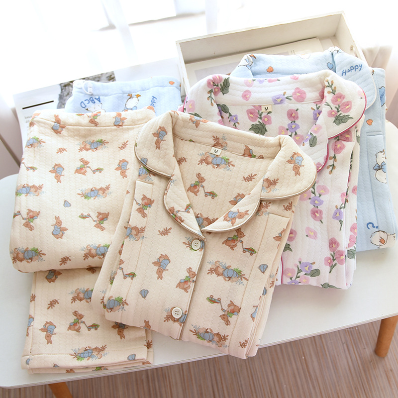 月子服春秋純綿産後秋冬空気綿妊婦授乳パジャマ産婦授乳家庭服