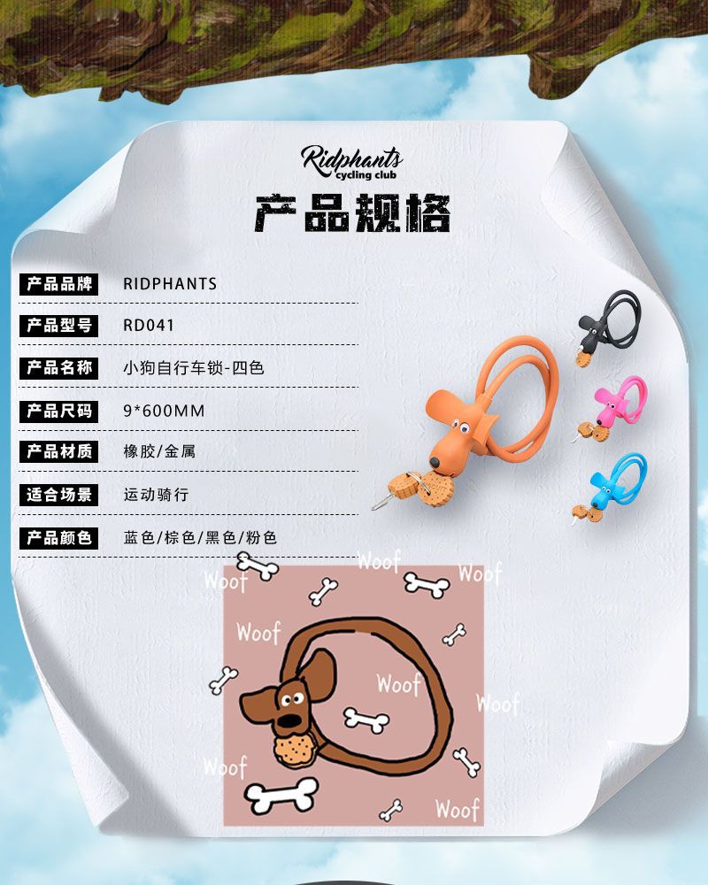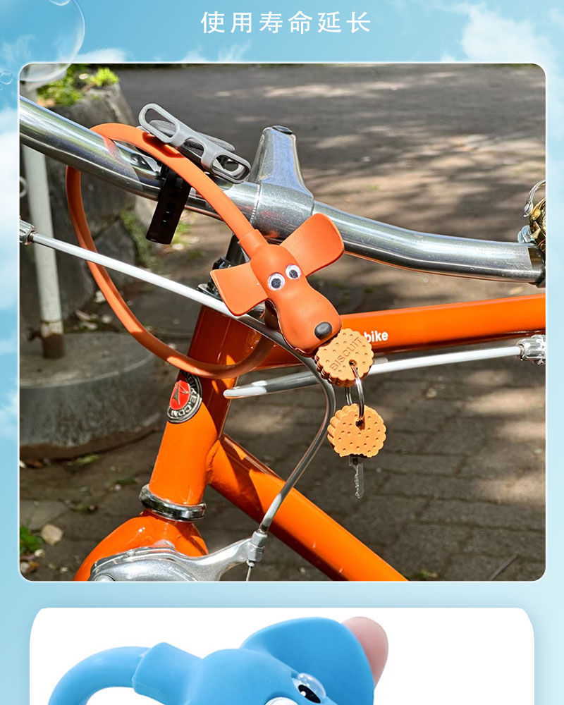 赤い本の同じタイプのシリコンの漫画のビスケットの子犬の自転車の創意の車は安全ロックの盗難防止の鍵をロックします。