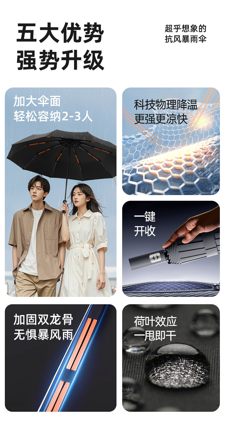 【抗風双龍骨24本傘骨】曜石黒