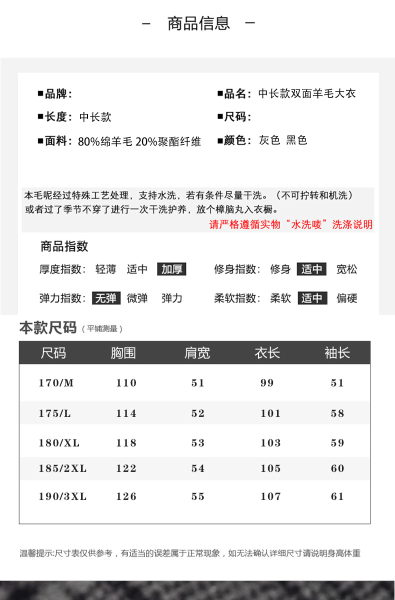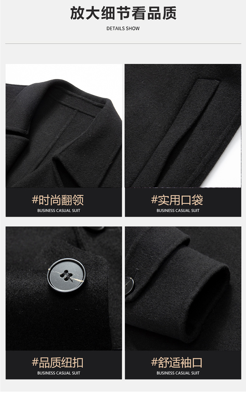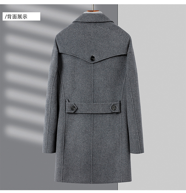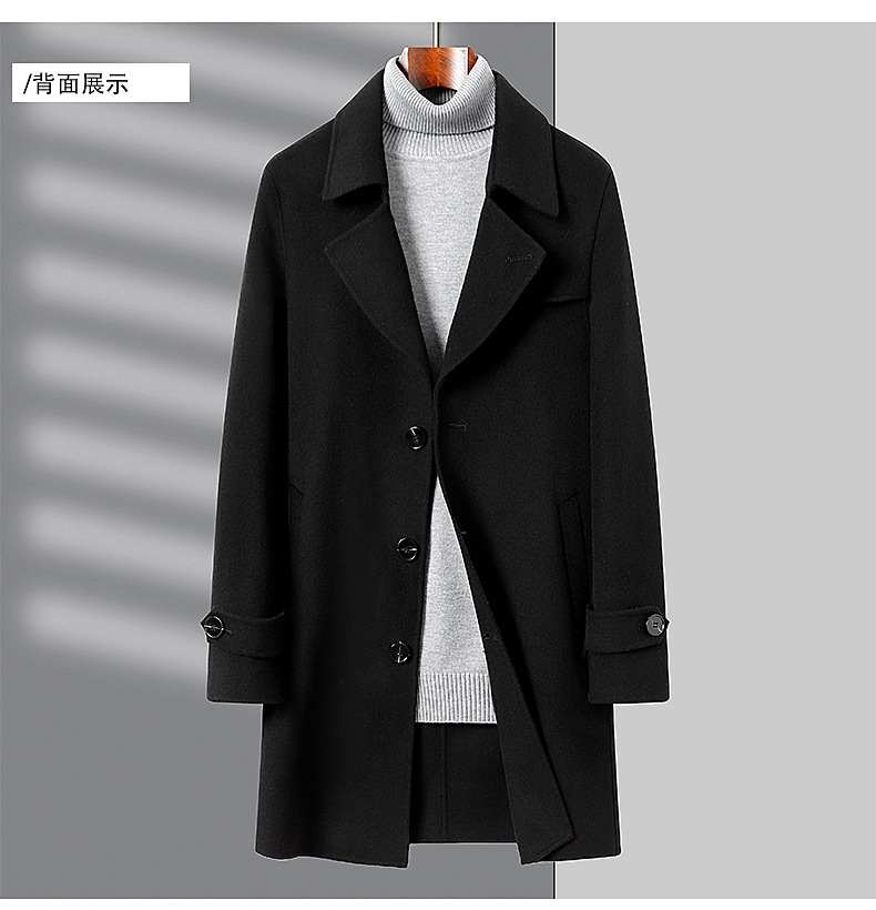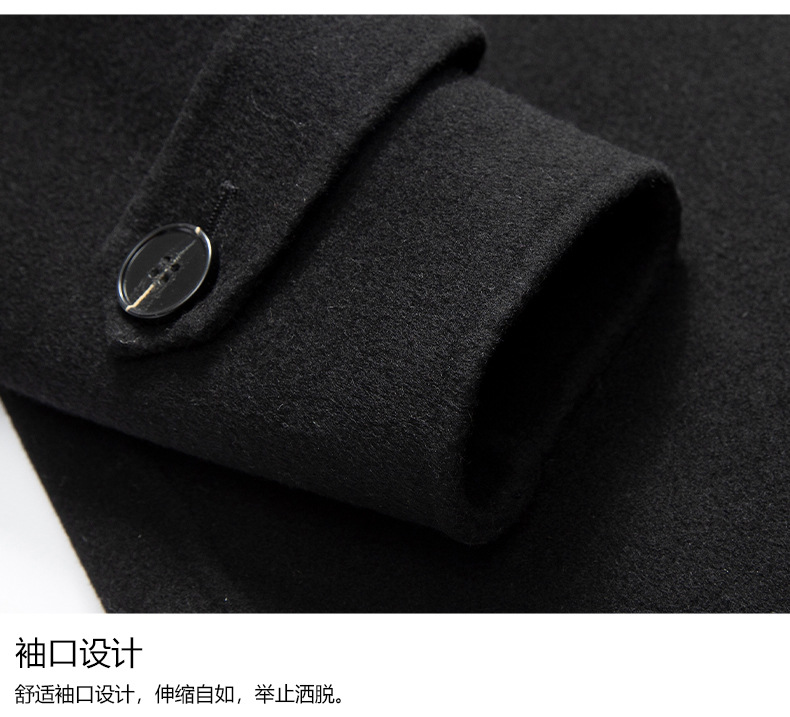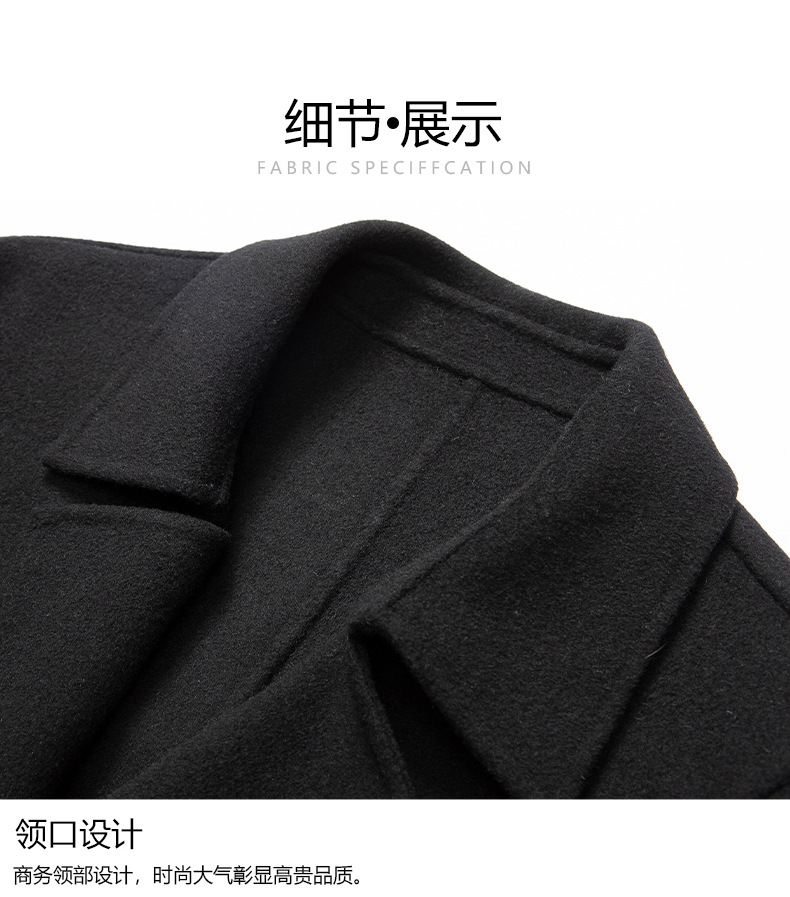 2024新韓版気質綿毛ラシャコート男性の純色の中の長さは両面のコートを厚くしています。