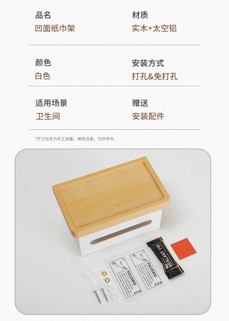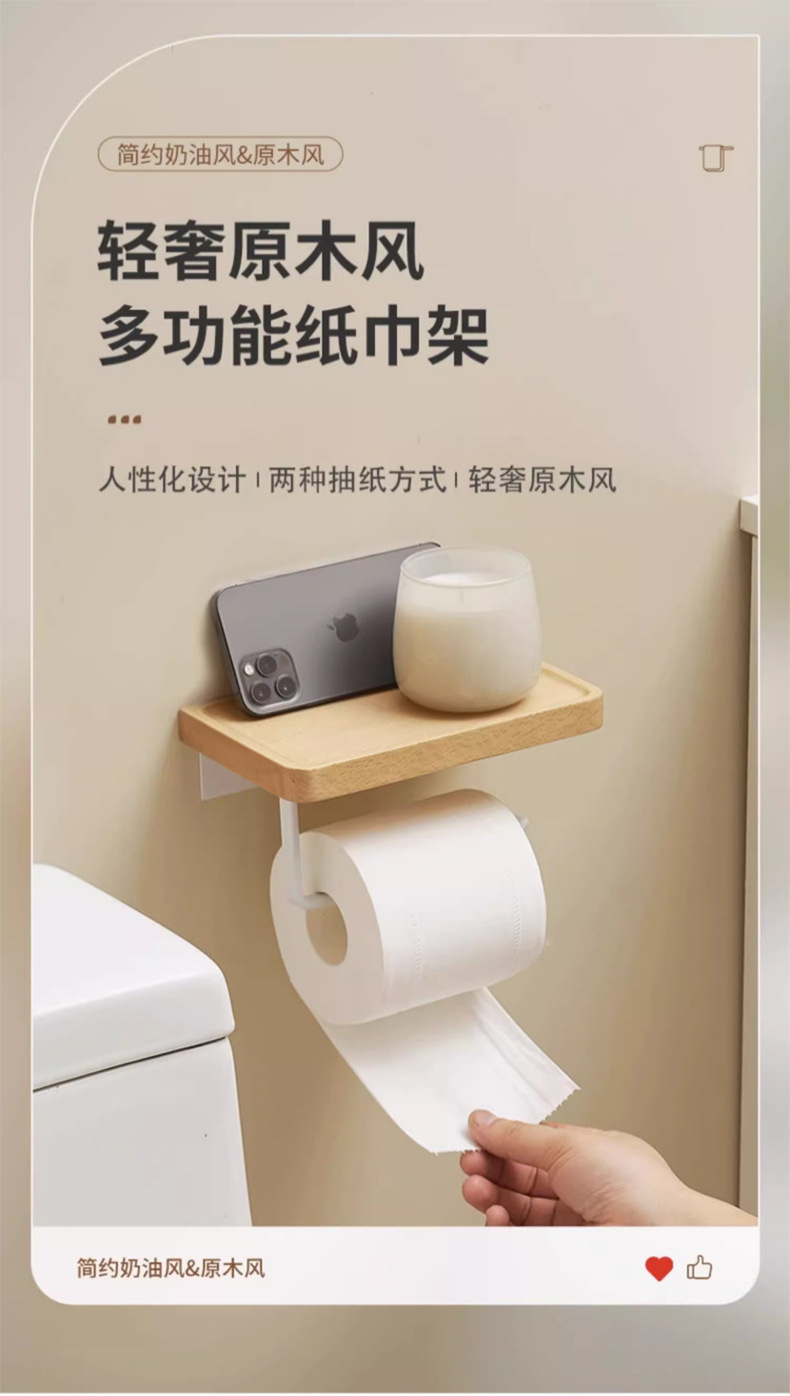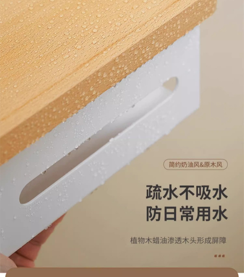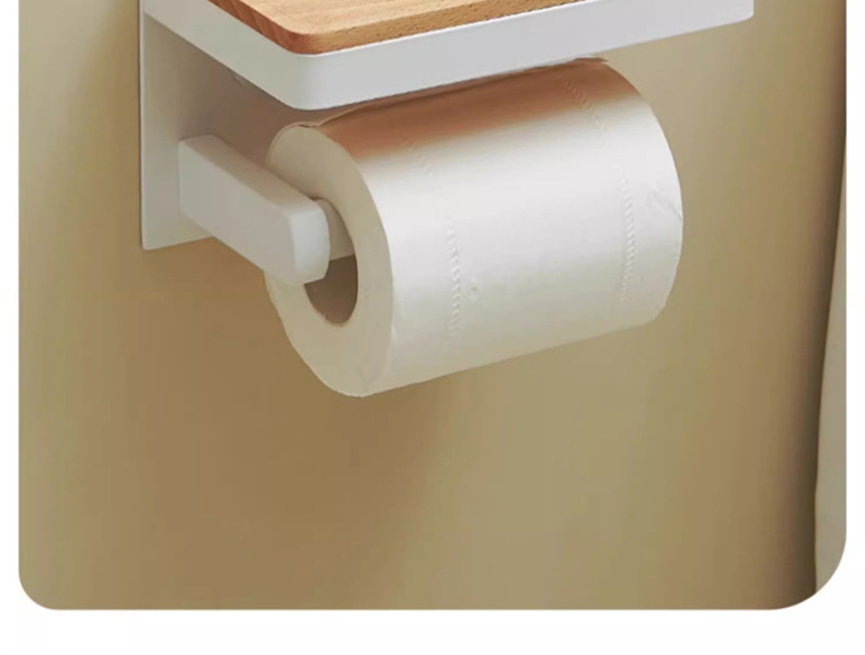 穴を開けない浴室のティッシュボックスの棚トイレのアイデア日本式トイレの白い木の巻き紙棚の壁掛け式