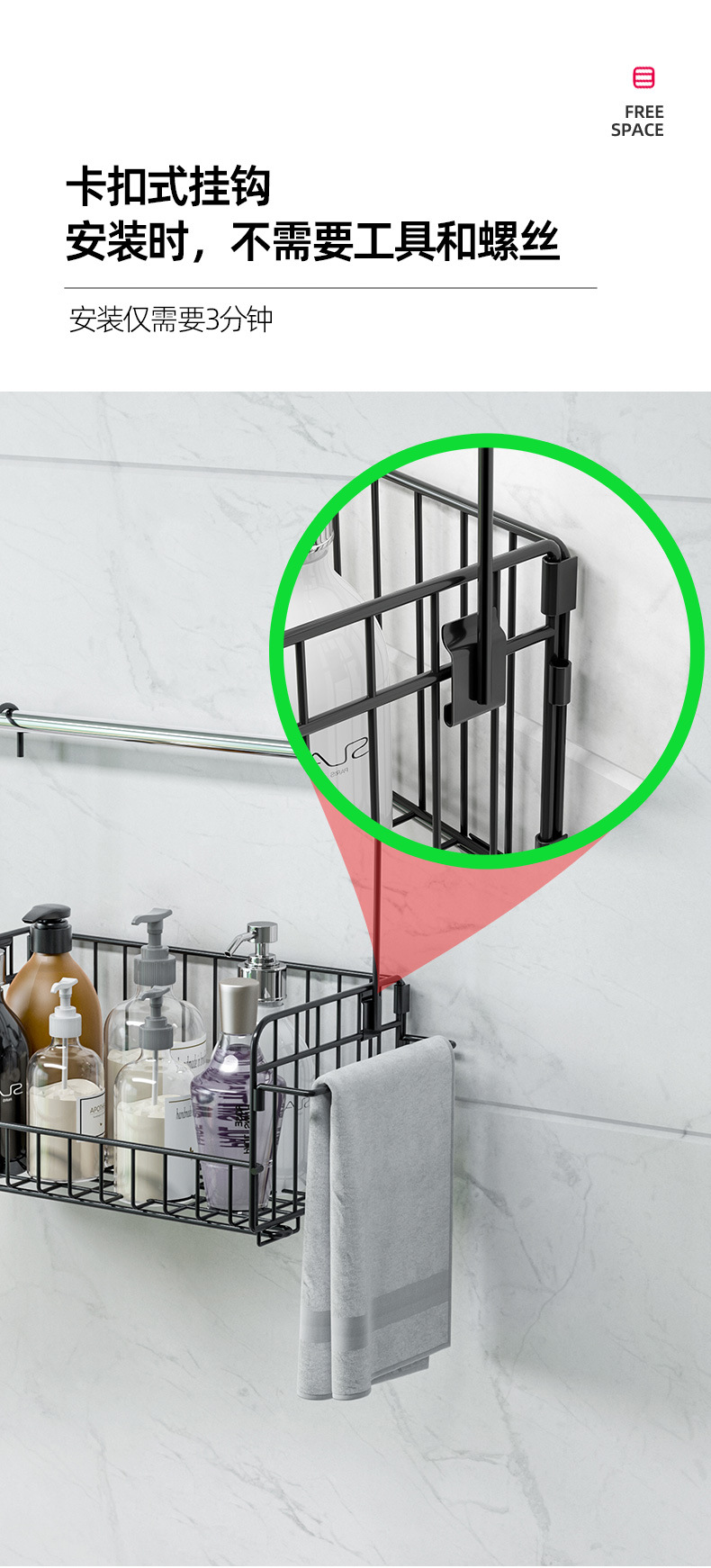 着脱タイプのバスルームバスケット-ホワイト,着脱タイプ浴室バスケット-黒