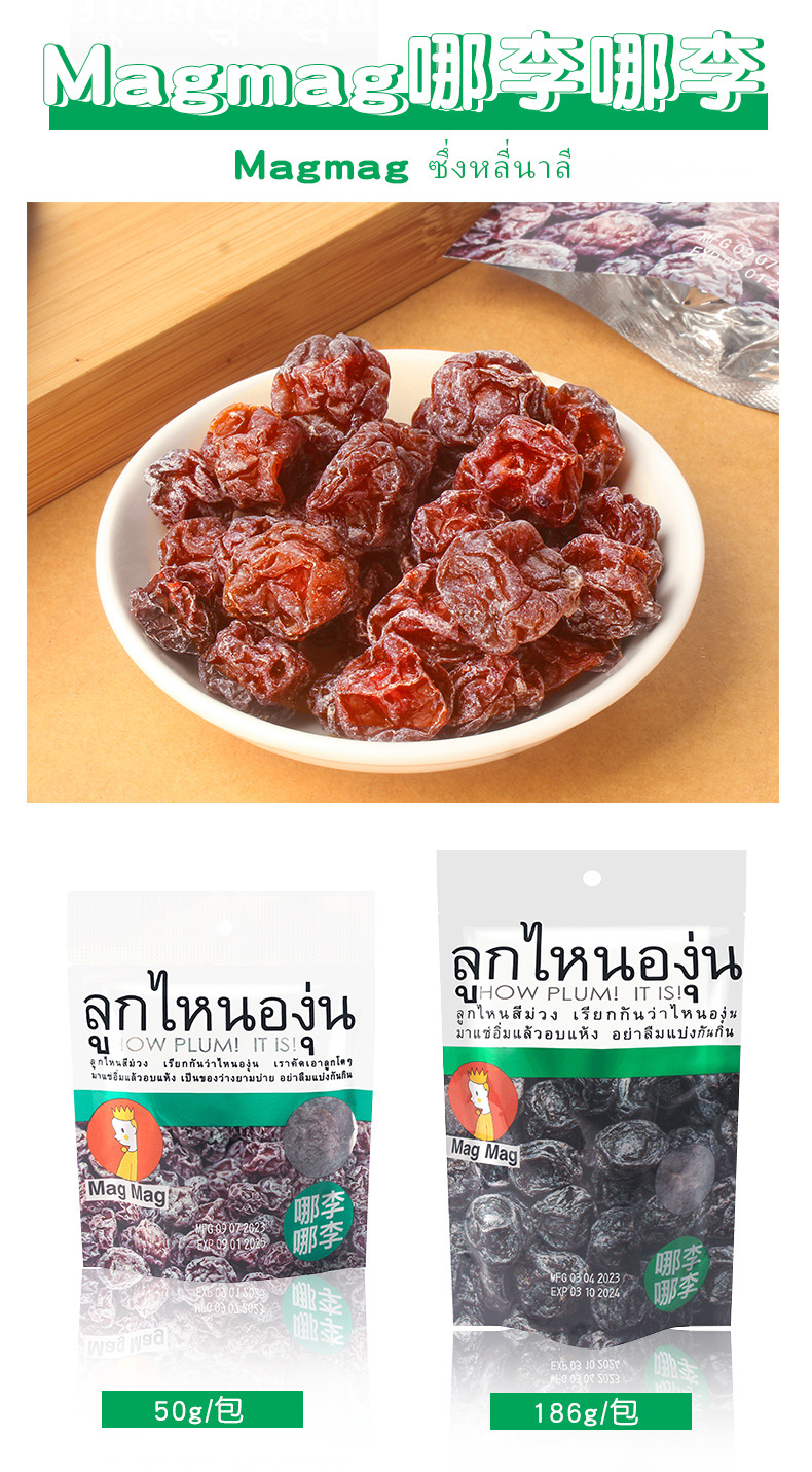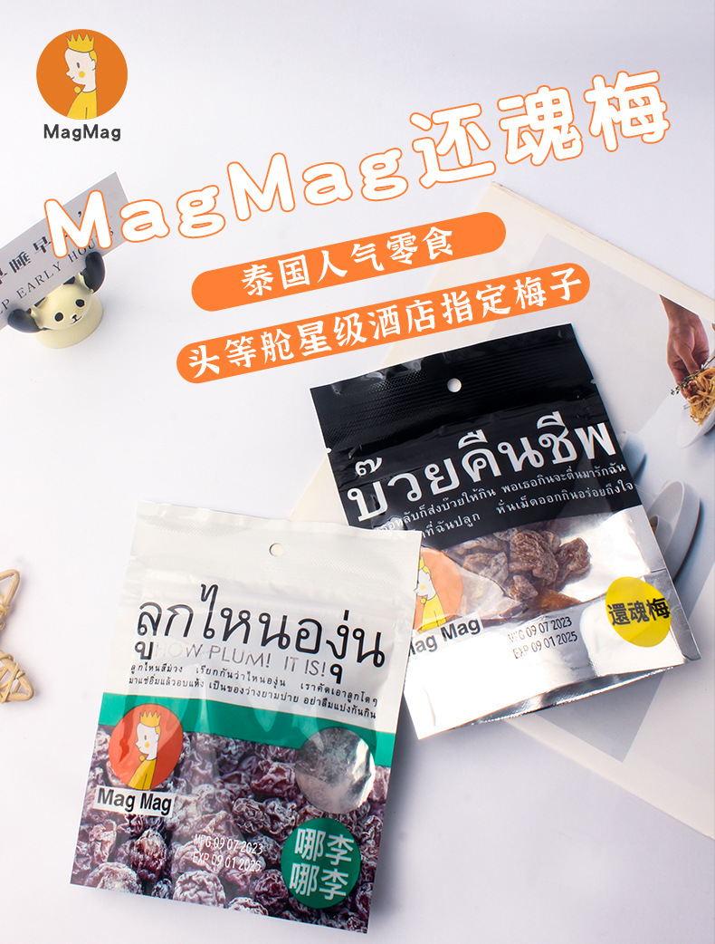 タイから輸入したマグマグは、梅干し、クイーンスパイシー梅、梅肉の砂糖漬け、カジュアルスナックです。