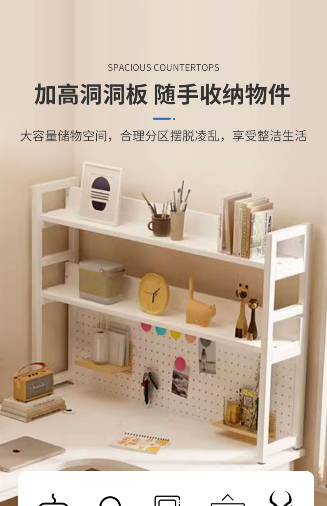 【シングルテーブル本棚穴板】ミルクホワイト左タイプ