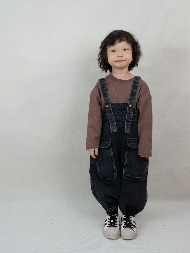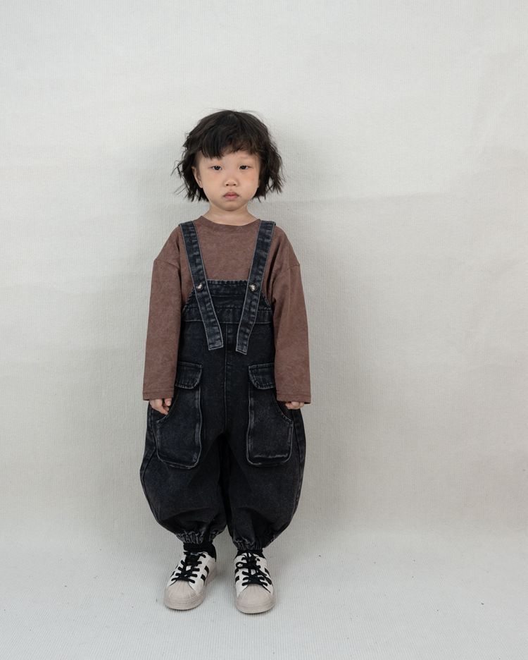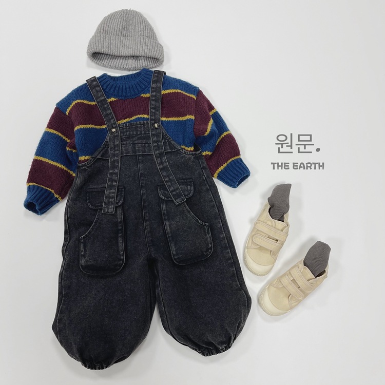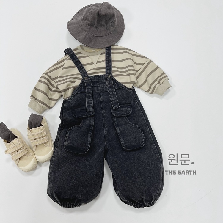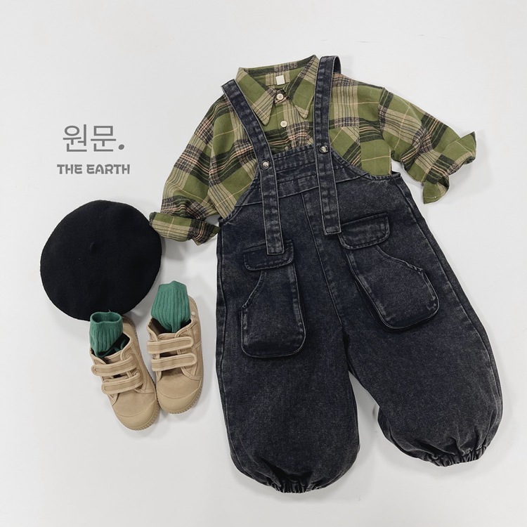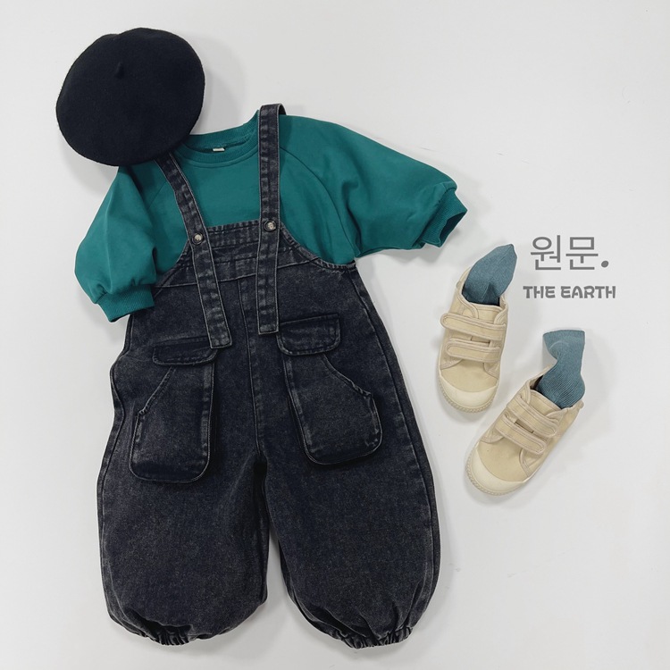 韓国の子供服の子供のバックパンツの秋の新型の男女の子供の日系の百合のサスペンダーのズボンの赤ちゃんの工装のジーパン