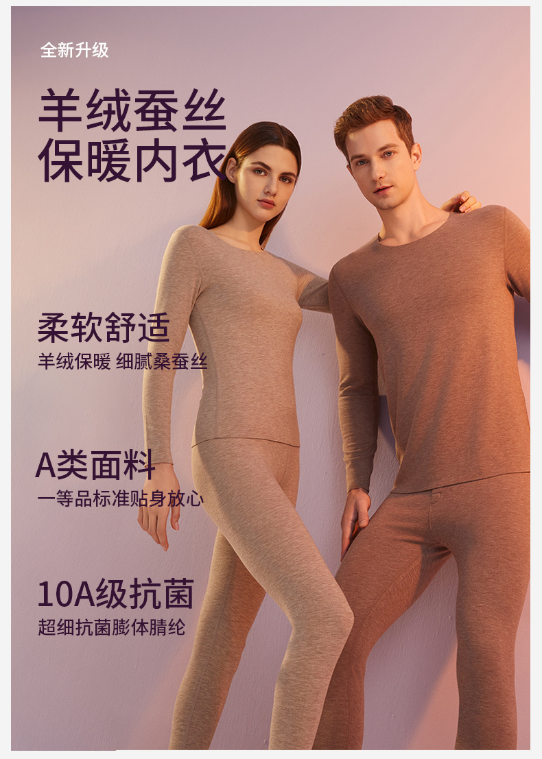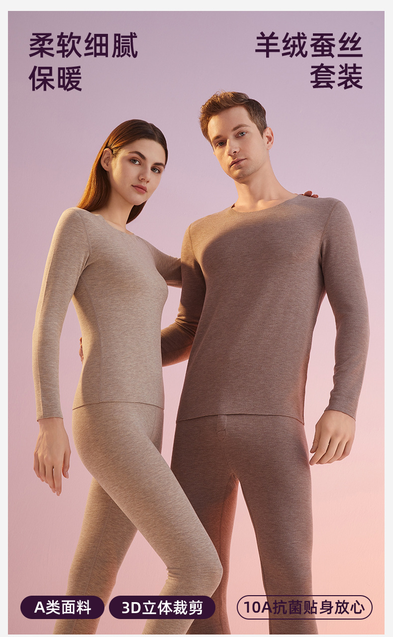 カシミヤシルクデロン保温下着 女性用A級保温衣 秋服 秋パンツ メンズセット 裏起毛10A抗菌