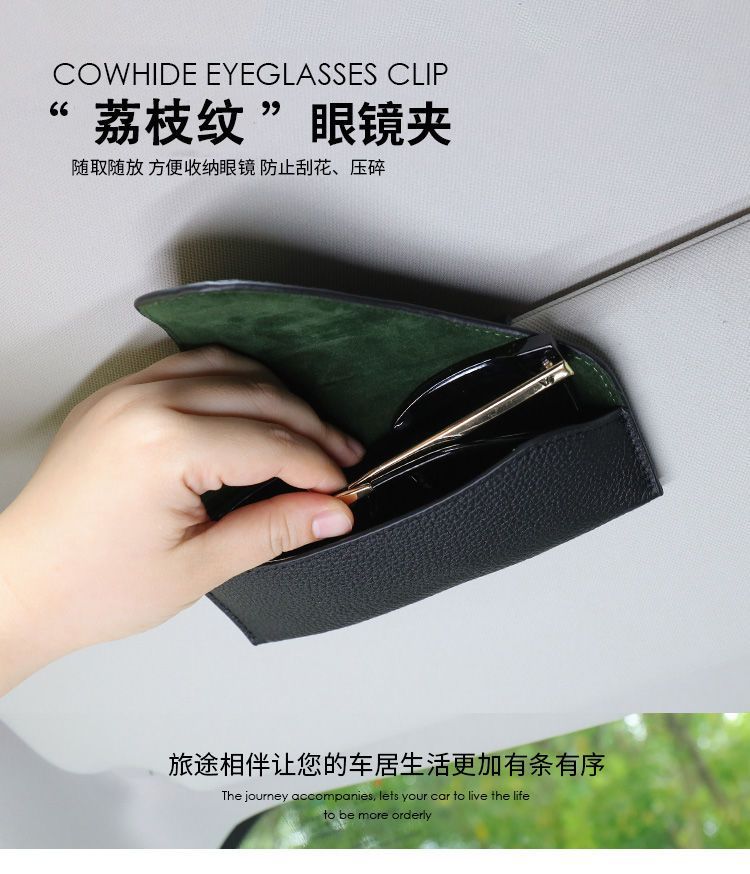 車載メガネ収納ケース汎用サンバイザーメガネクリップソフトレザー高級感車用サングラスフレーム自動車用品