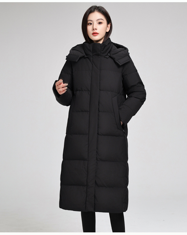レディースダウンジャケット ロング丈 2025年冬新作 厚手 暖かい ダックダウン 女性用コート おしゃれ シンプル カレッジスタイル