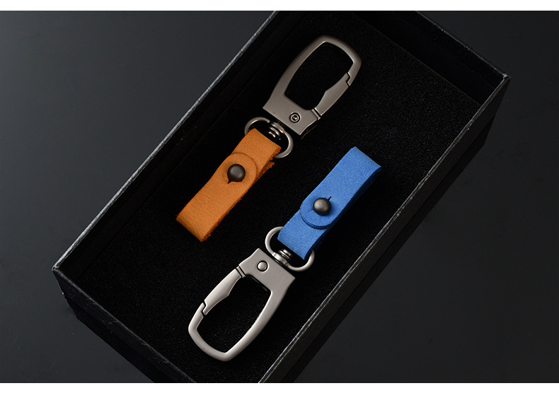 軽くて豪華な本革の自動車のキーホルダーの頭の層のつや消しの牛革の車のキーチェーンの個性のカップルの腰は掛けてペンダントをなくします。