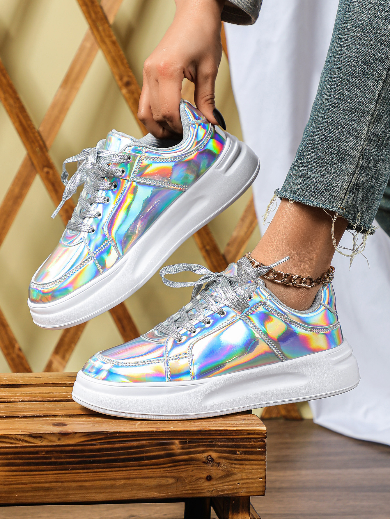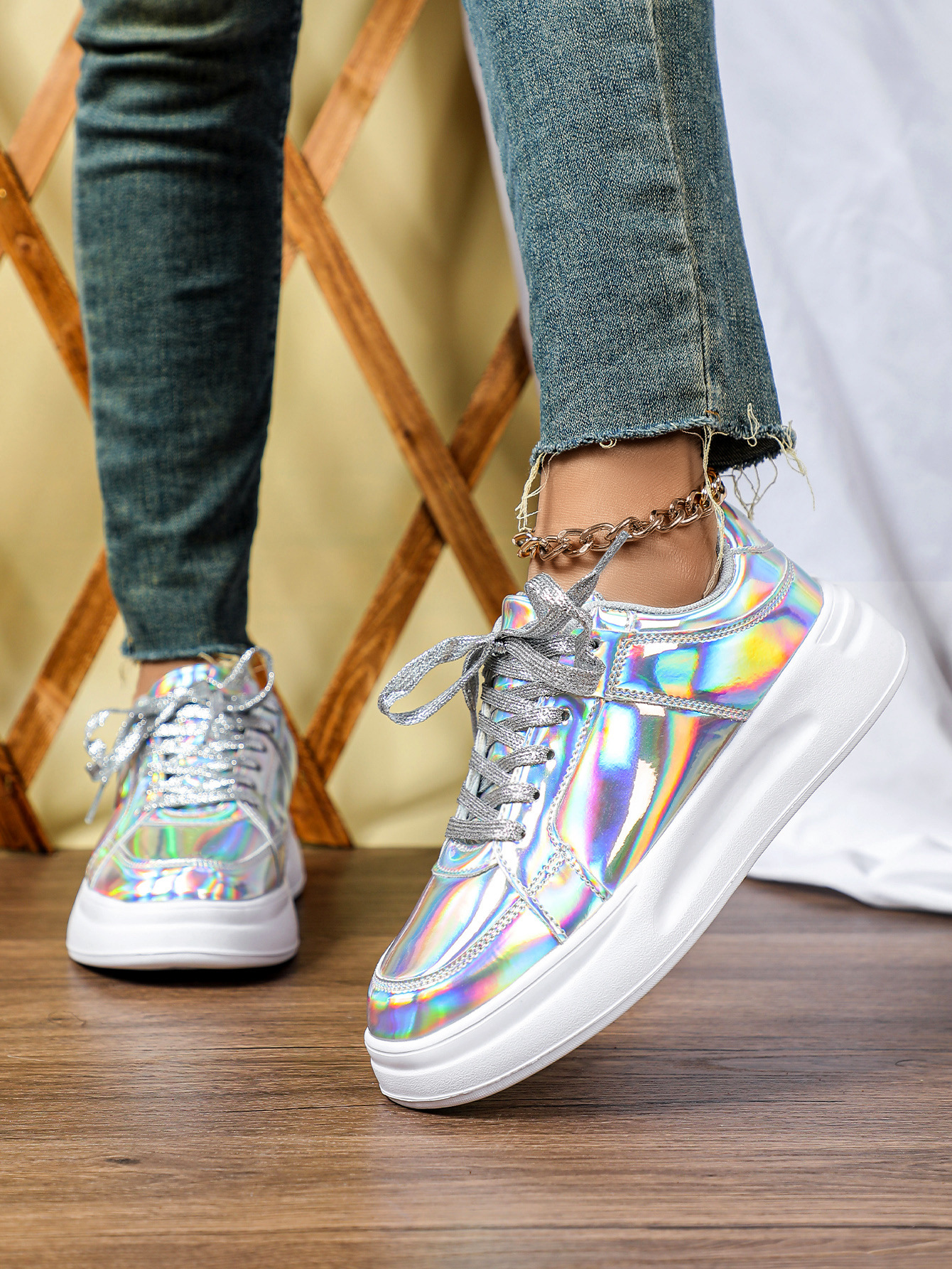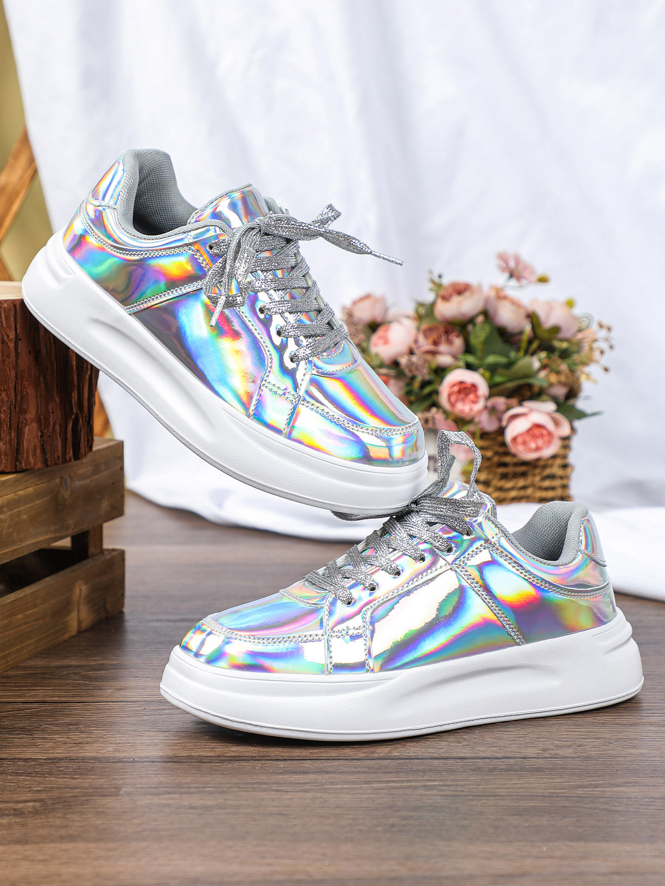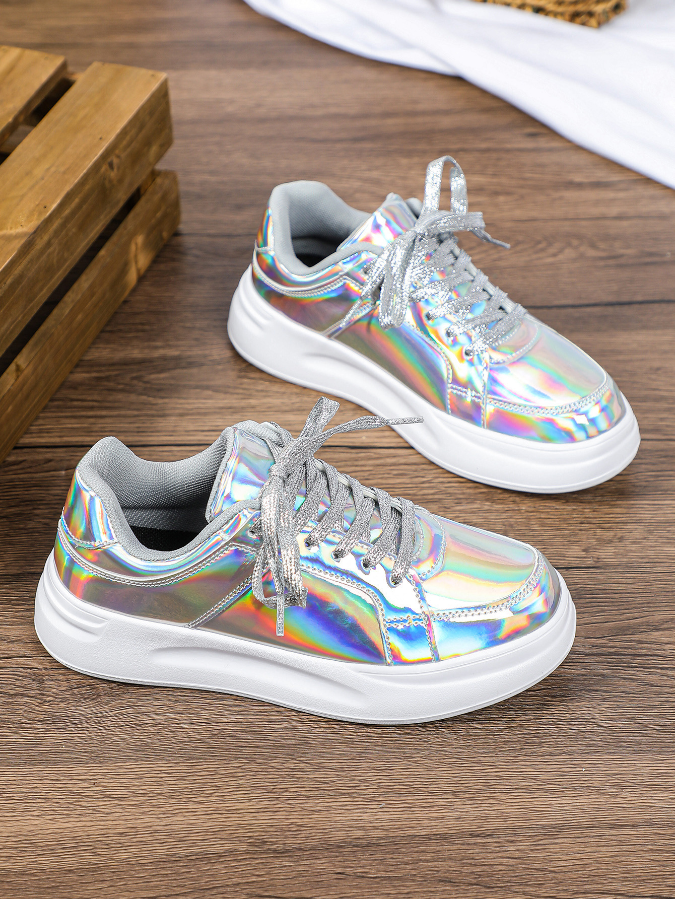 厚い底のスパンコールのファッションの板の靴は高くなってレジャーの運動靴の通気性の軽い屋外の平底の靴のカップルのファッションの靴