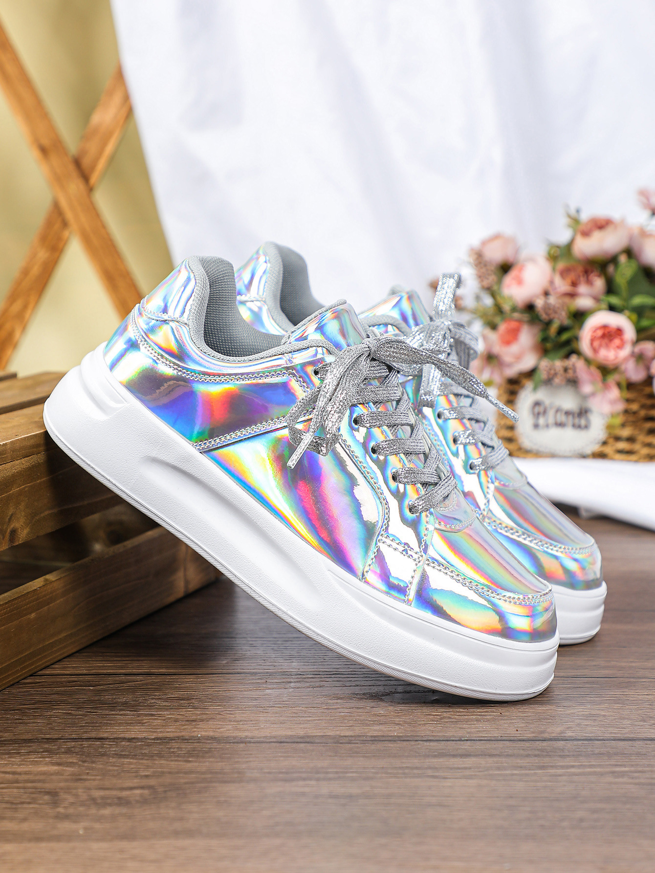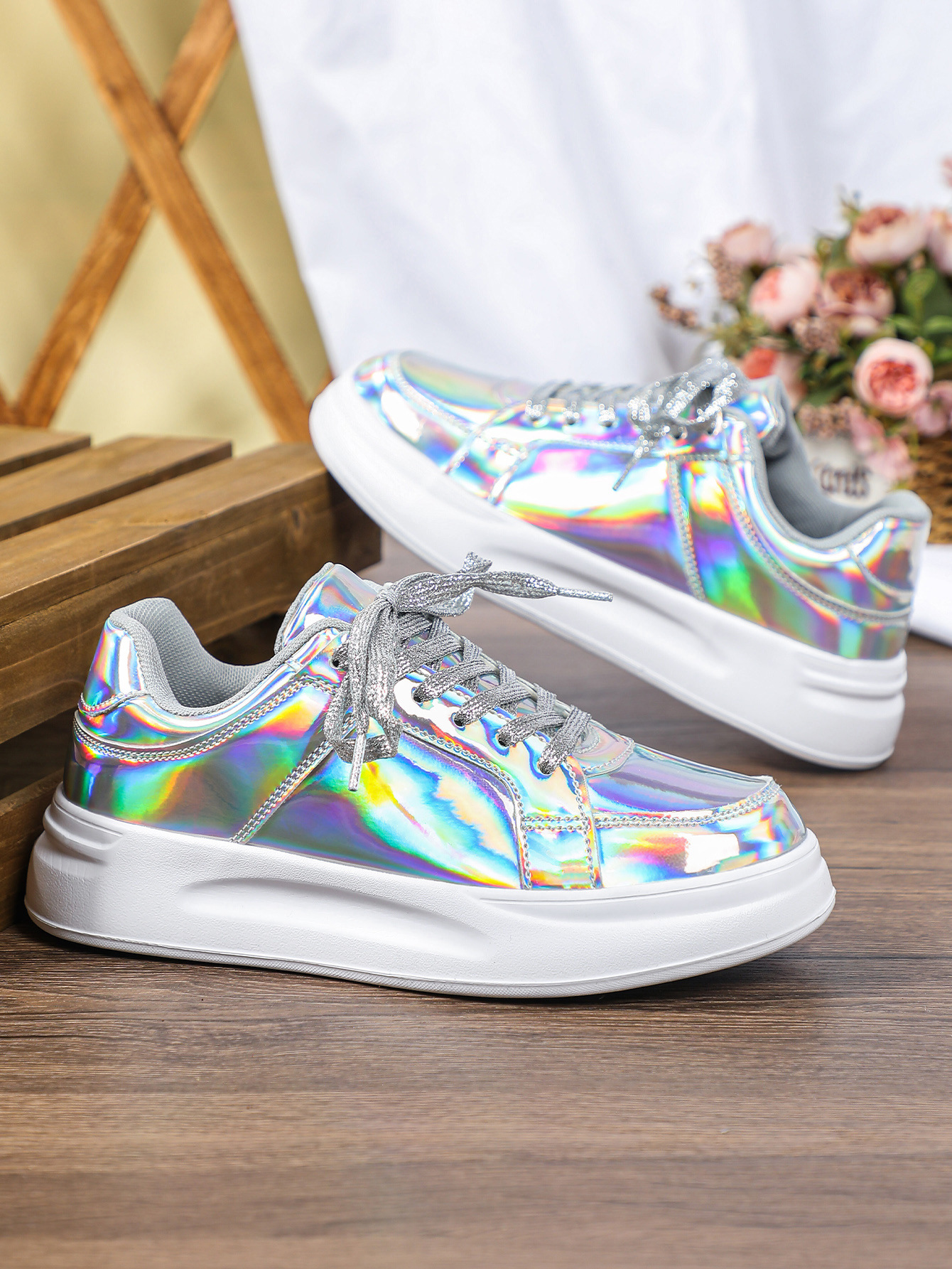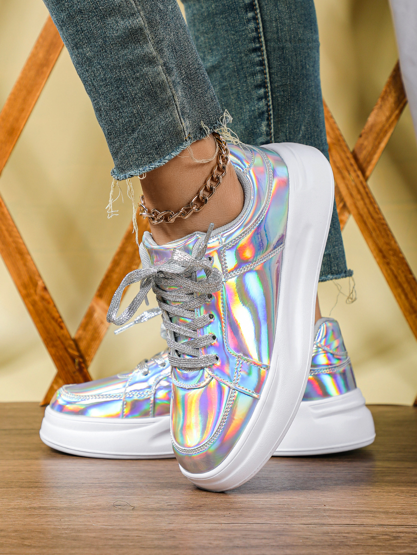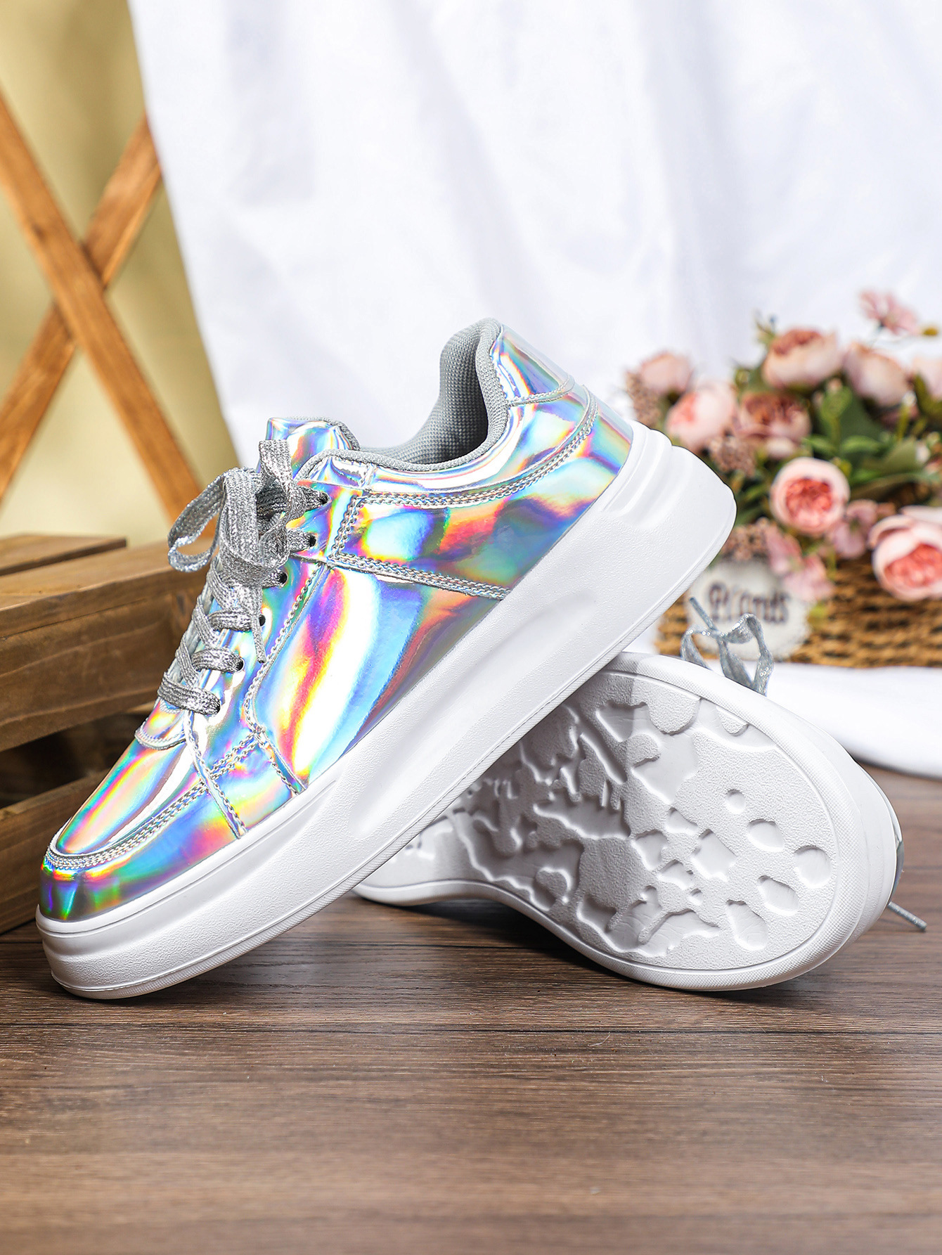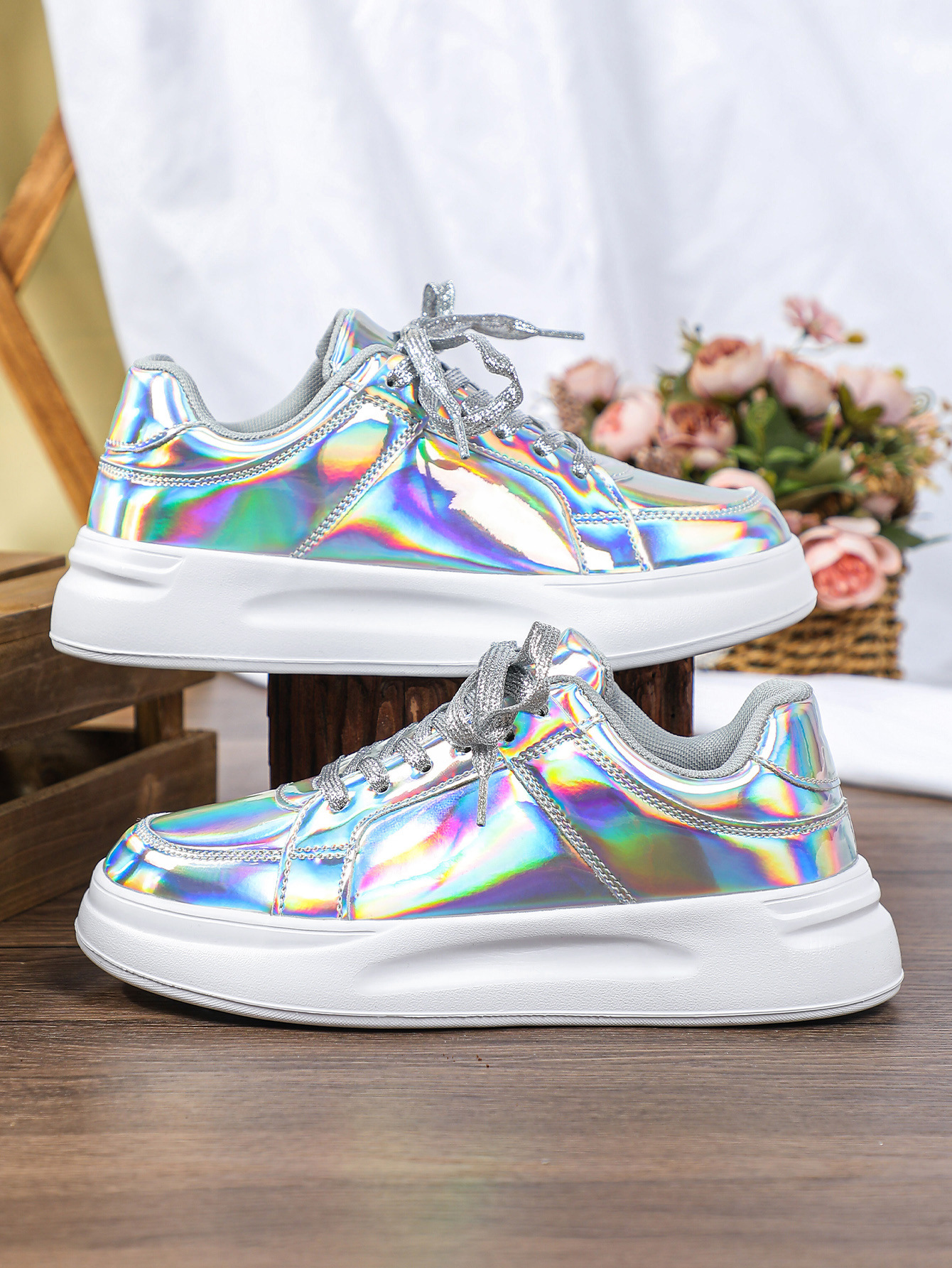 厚い底のスパンコールのファッションの板の靴は高くなってレジャーの運動靴の通気性の軽い屋外の平底の靴のカップルのファッションの靴