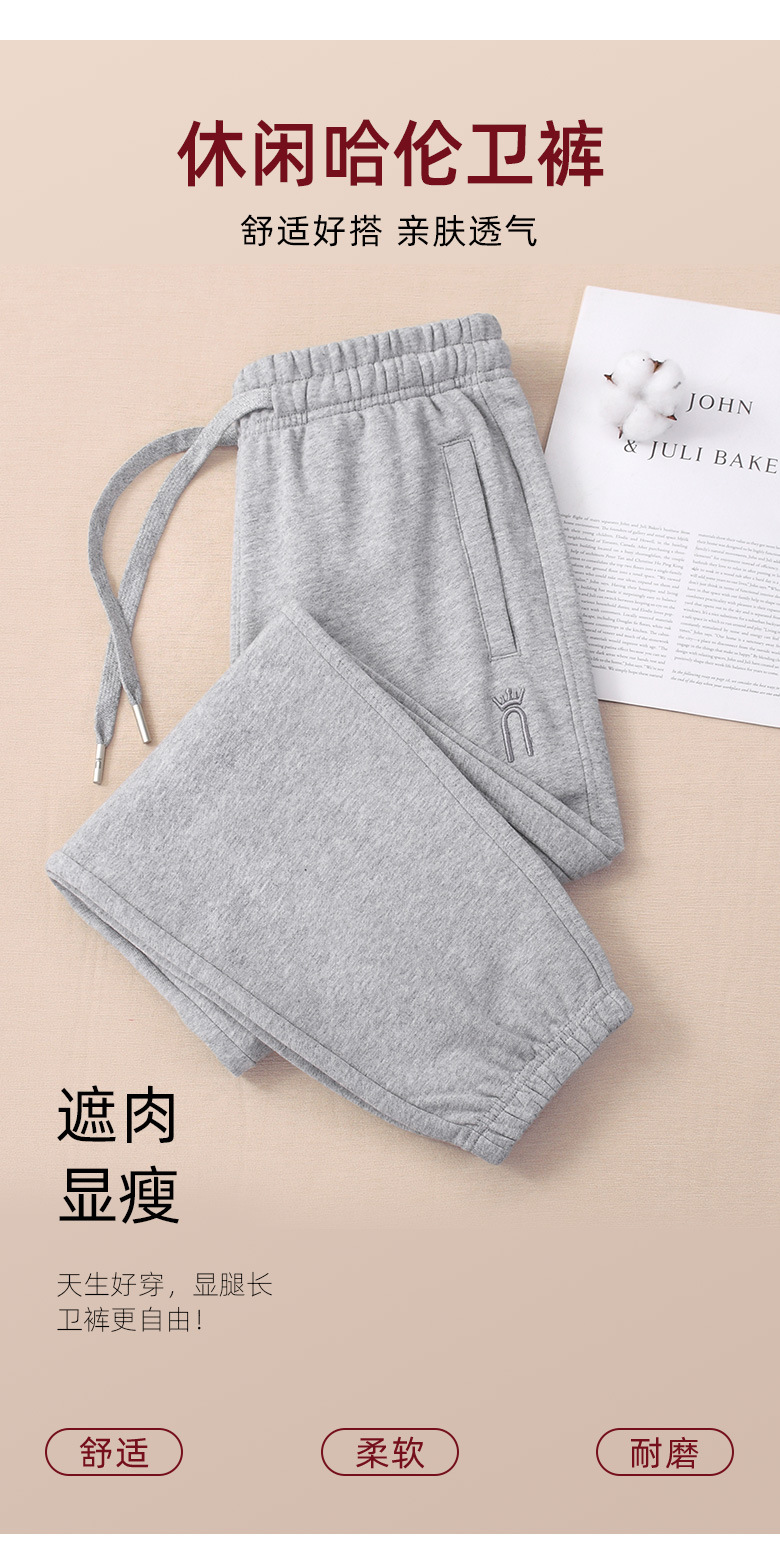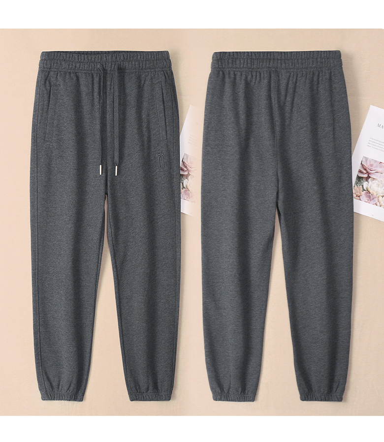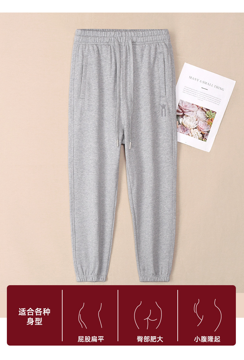 100%コットン グレーの女性用スポーツパンツ 春秋モデル 2026年新作 純綿スウェットパンツ 女性用フリースカジュアルパンツ