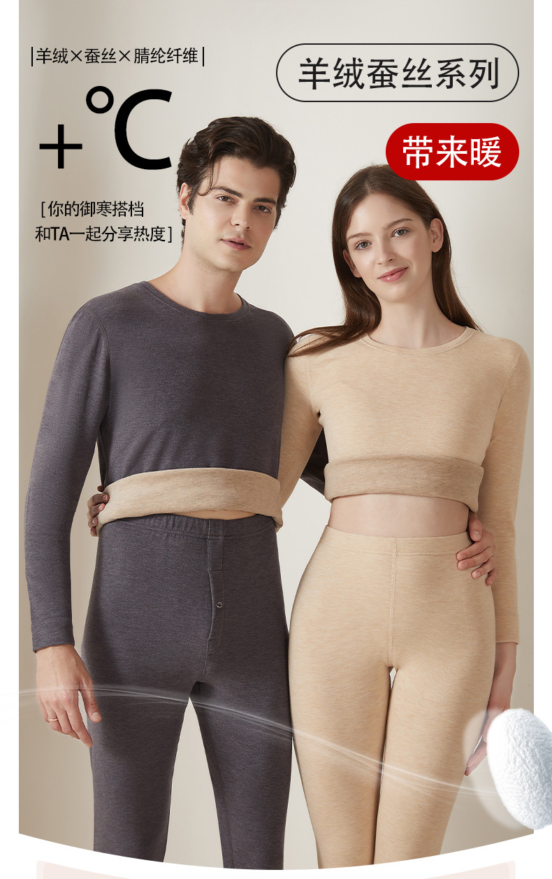 カシミヤシルクデロン保温下着セット メンズ レディース ウール発熱秋服秋パンツ 冬用シームレス防寒