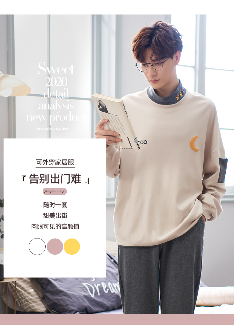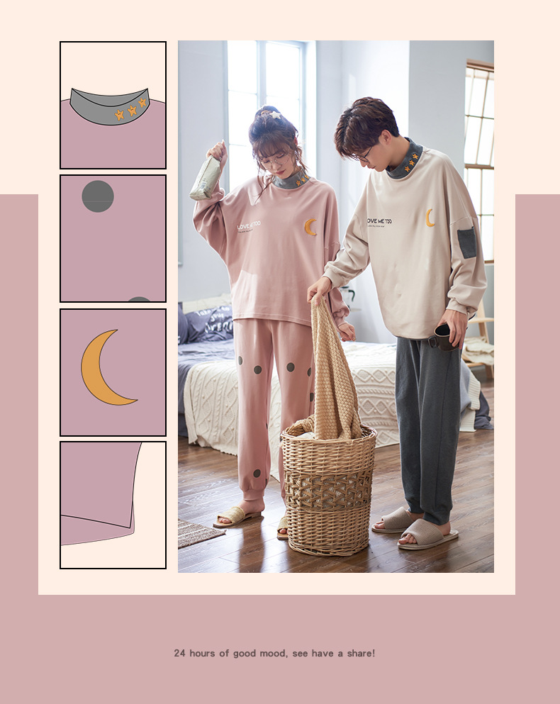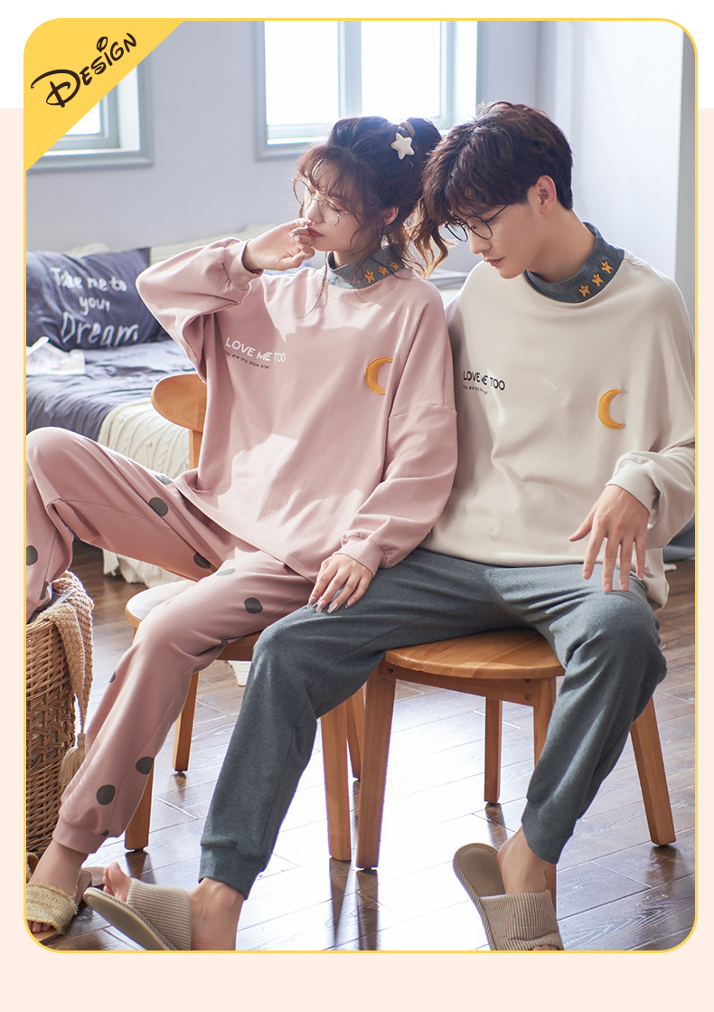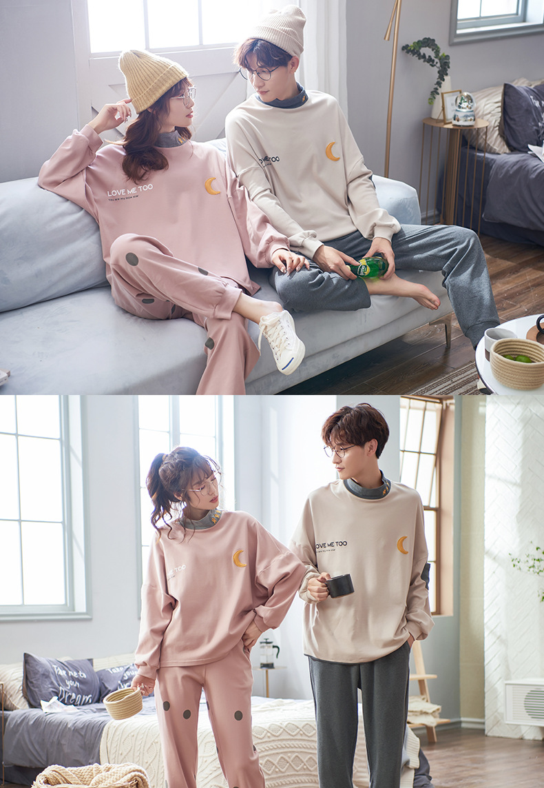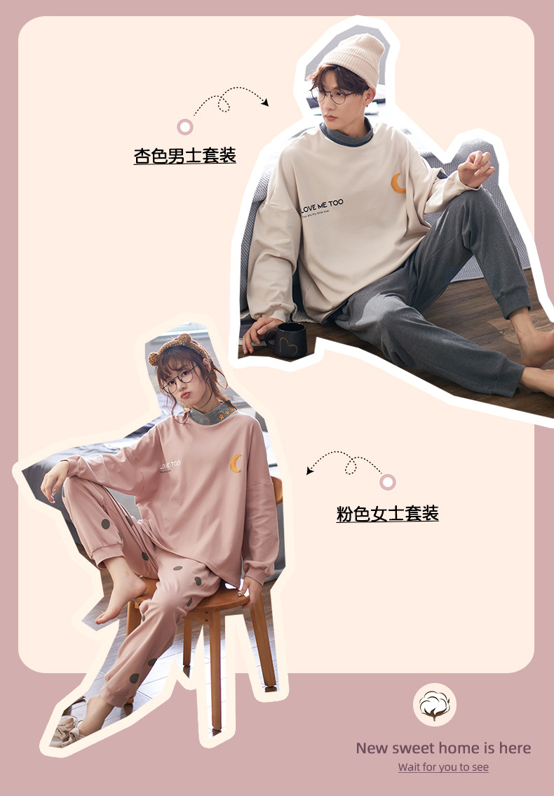 カップルパジャマ女性秋冬純綿長袖高襟スーツ男性大サイズ純綿春秋タイプホームウェア