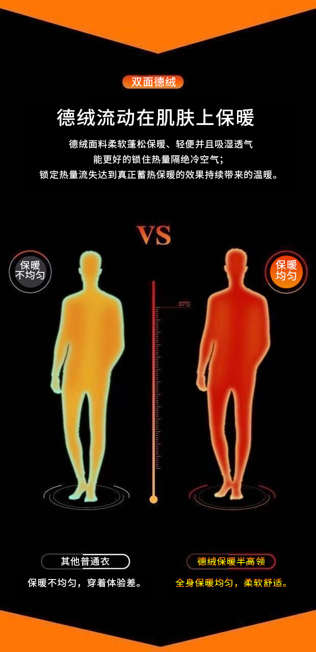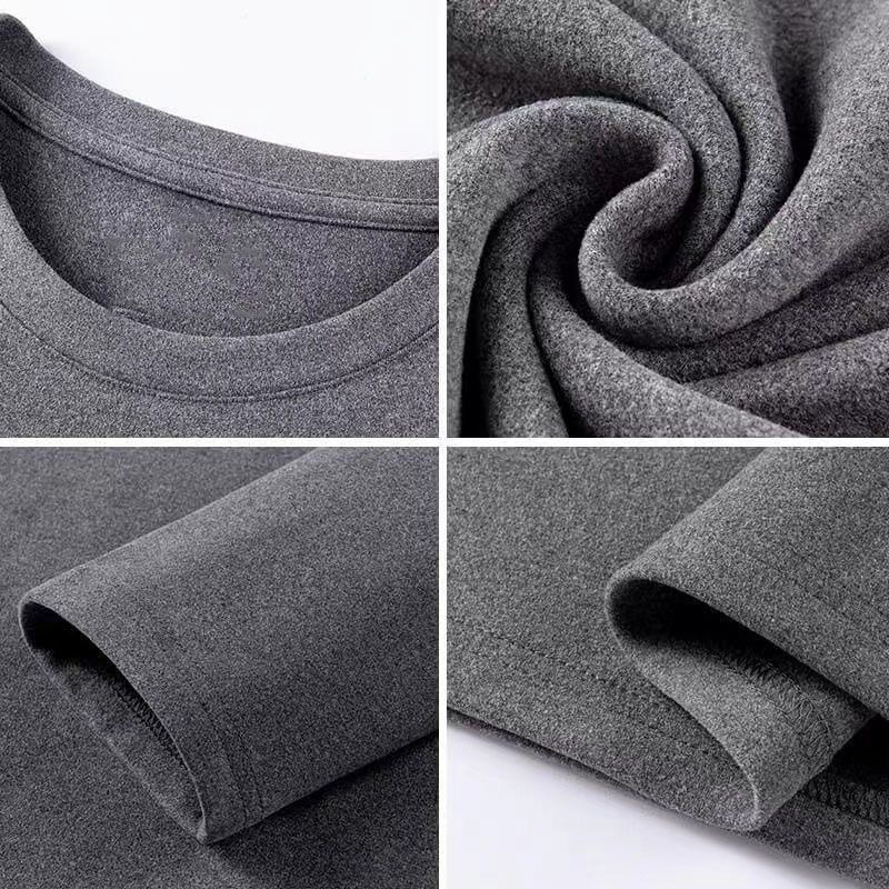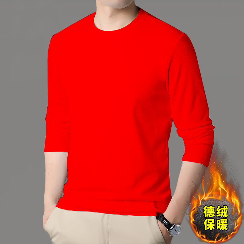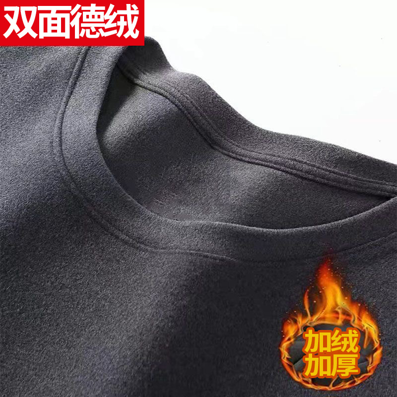 2025年両面デロン加厚フリースラウンドネックシームレスインナーウェア秋冬無地保温長袖Tシャツメンズ秋トップス