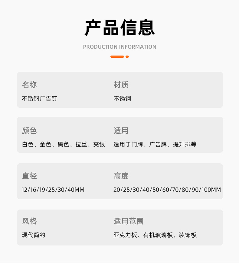 メーカーのステンレス鋼広告釘鋼ミラー釘アクリルネジ装飾カバー平面ガラス固定部品装飾釘