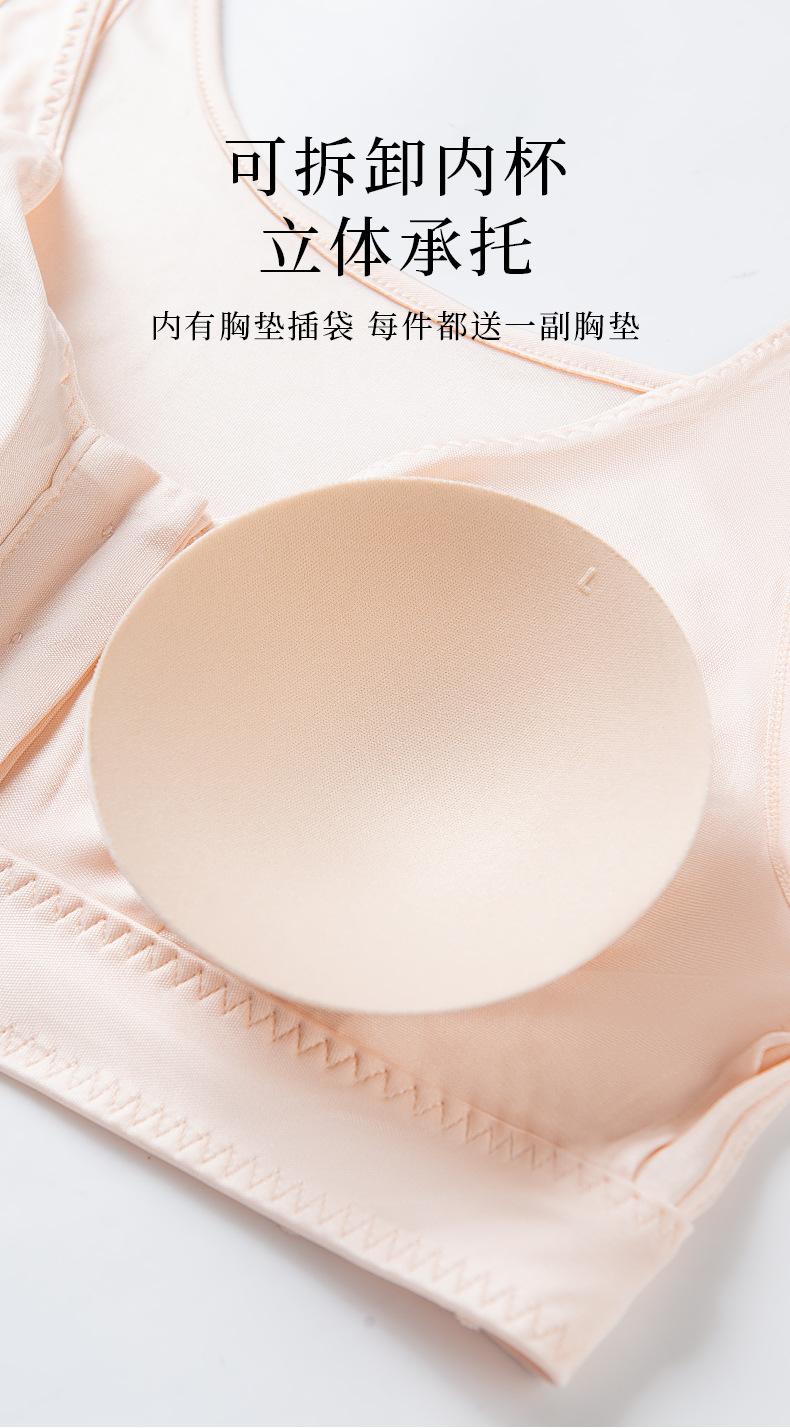 唐格のシルクの前ボタンのブラジャーの薄いタイプのスチールリングのない下着のブラジャーの桑のシルクのベスト式の胸のパッドの小さいベスト
