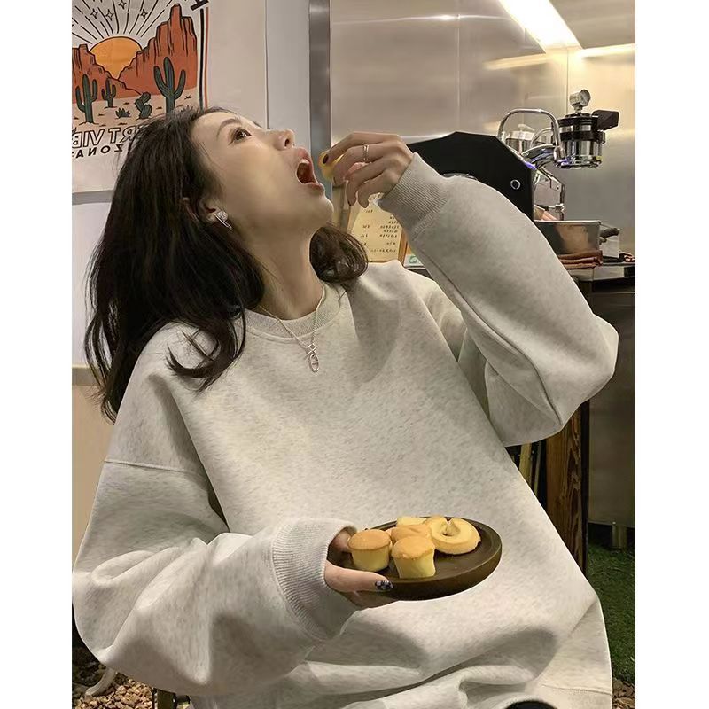 丸首の衛衣の灰色の女性の秋冬の高級感の小さい大衆のデザイン感のゆったりしている大きいサイズの純色の韓国版の怠惰な風の衛衣