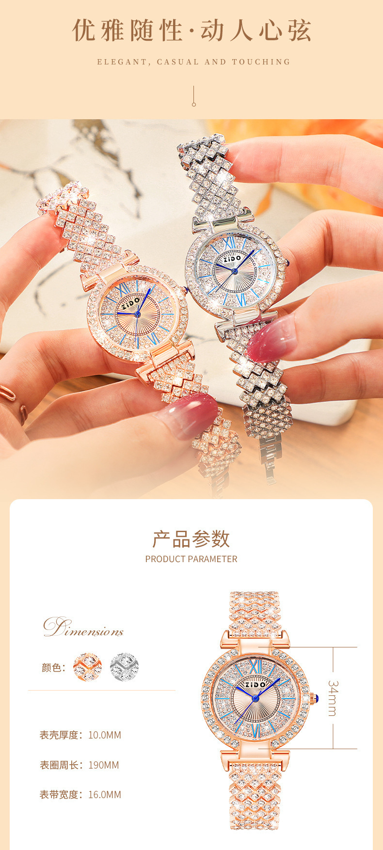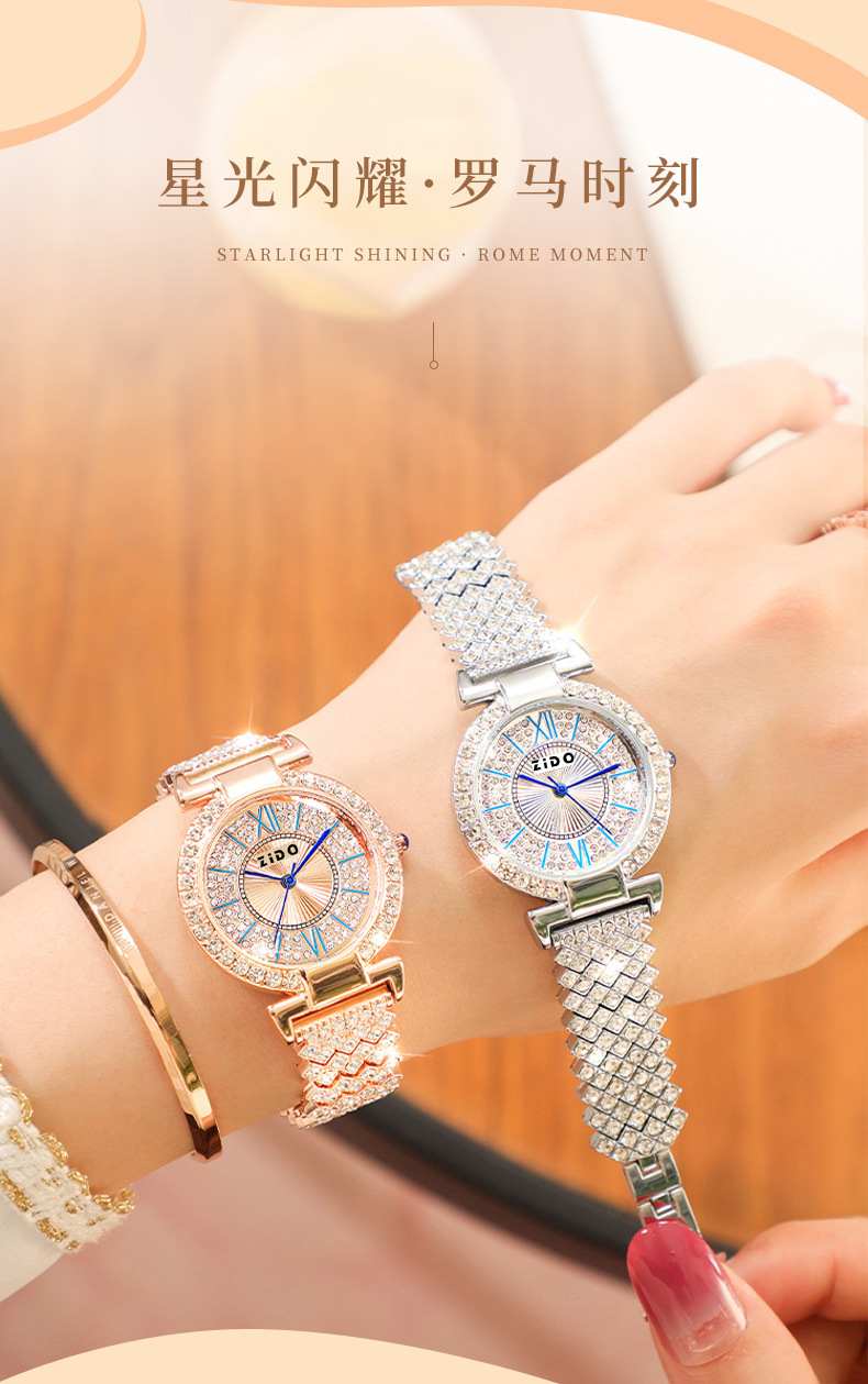 ZIDO ブランド シニア ファッション レディース ウォッチ シンプル カジュアル 気質 ライト 高級 高級 トレンド フル ダイヤモンド スターライト レディース ウォッチ