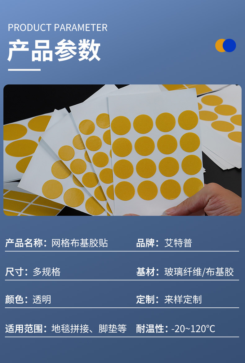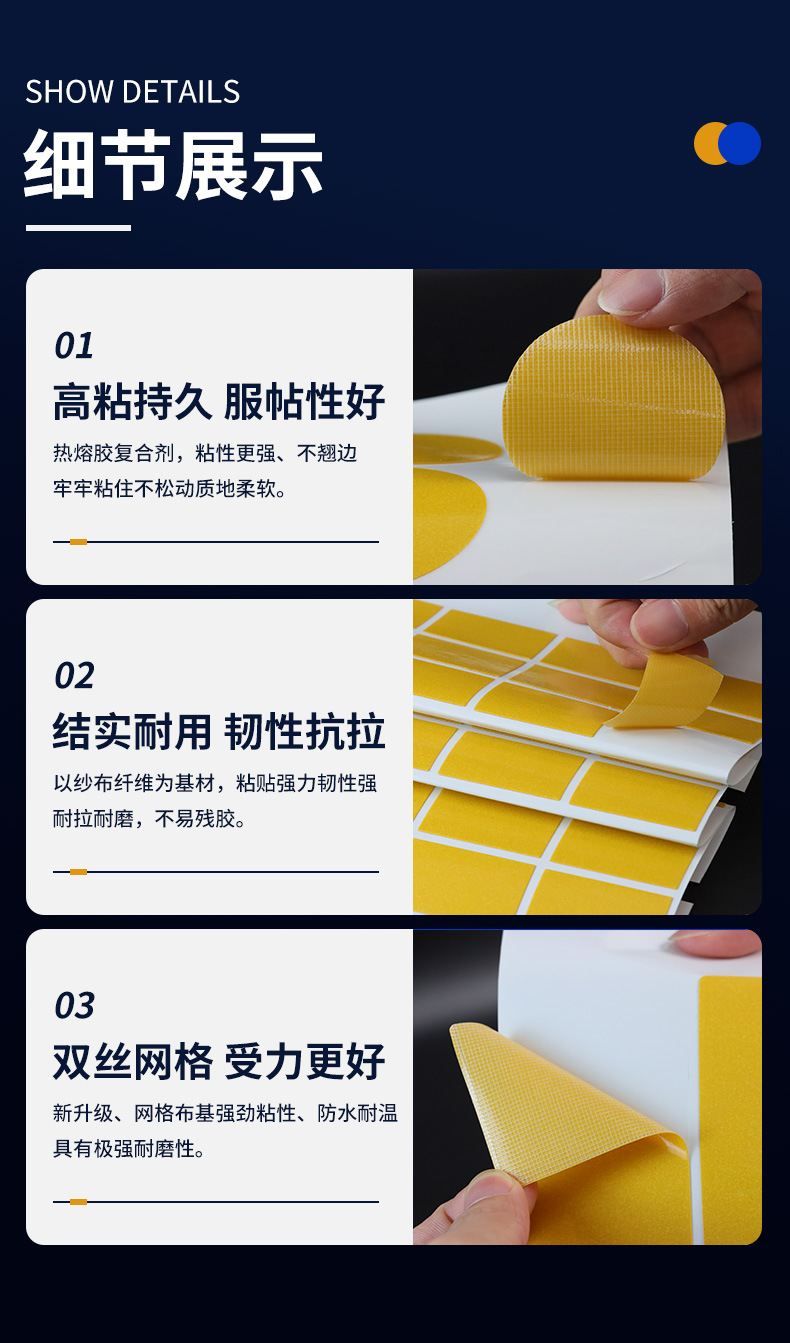ダイカットラウンドメッシュ両面布ベース粘着テープ強力な高粘度カーペット固定カスタム布ベース両面テープ