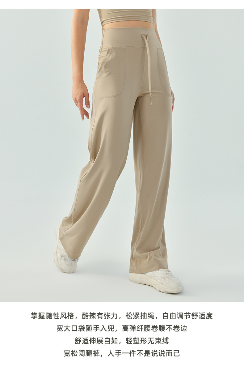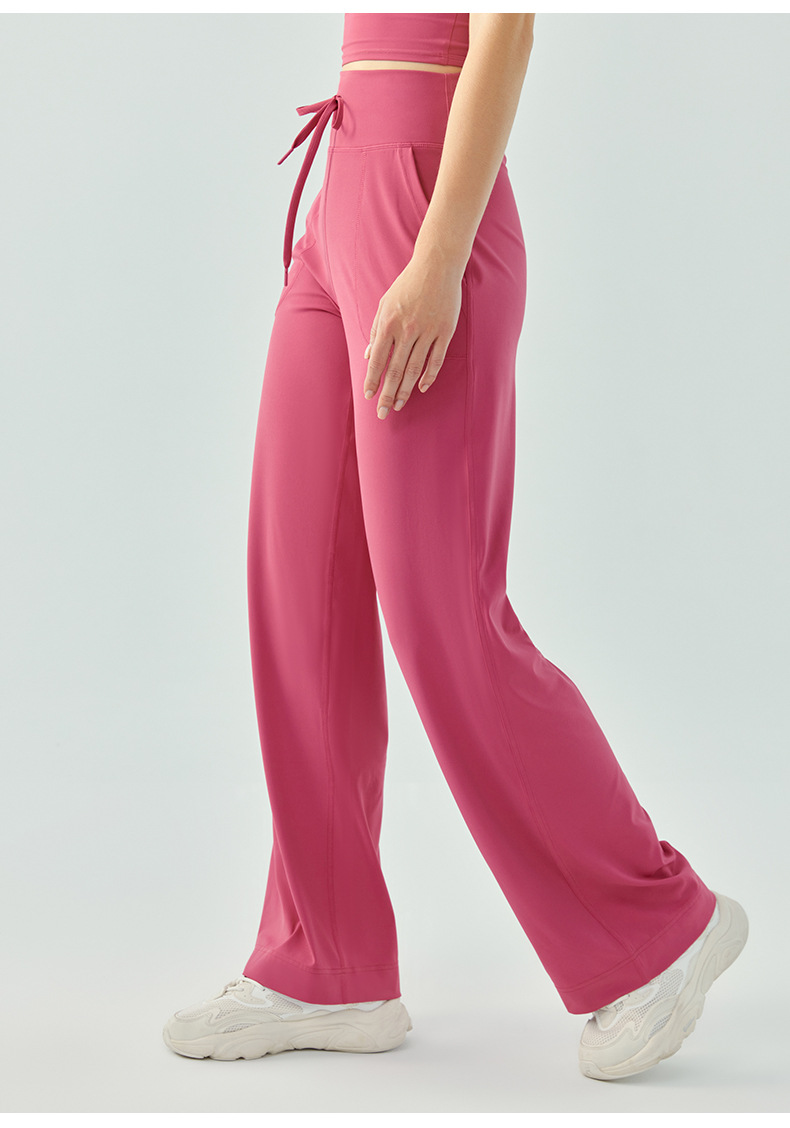 裸感の高い腰のひもの運動のズボンの女性のゆったりしている広脚の純色のフィットネスのズボンのランニングはスリムに見えます。