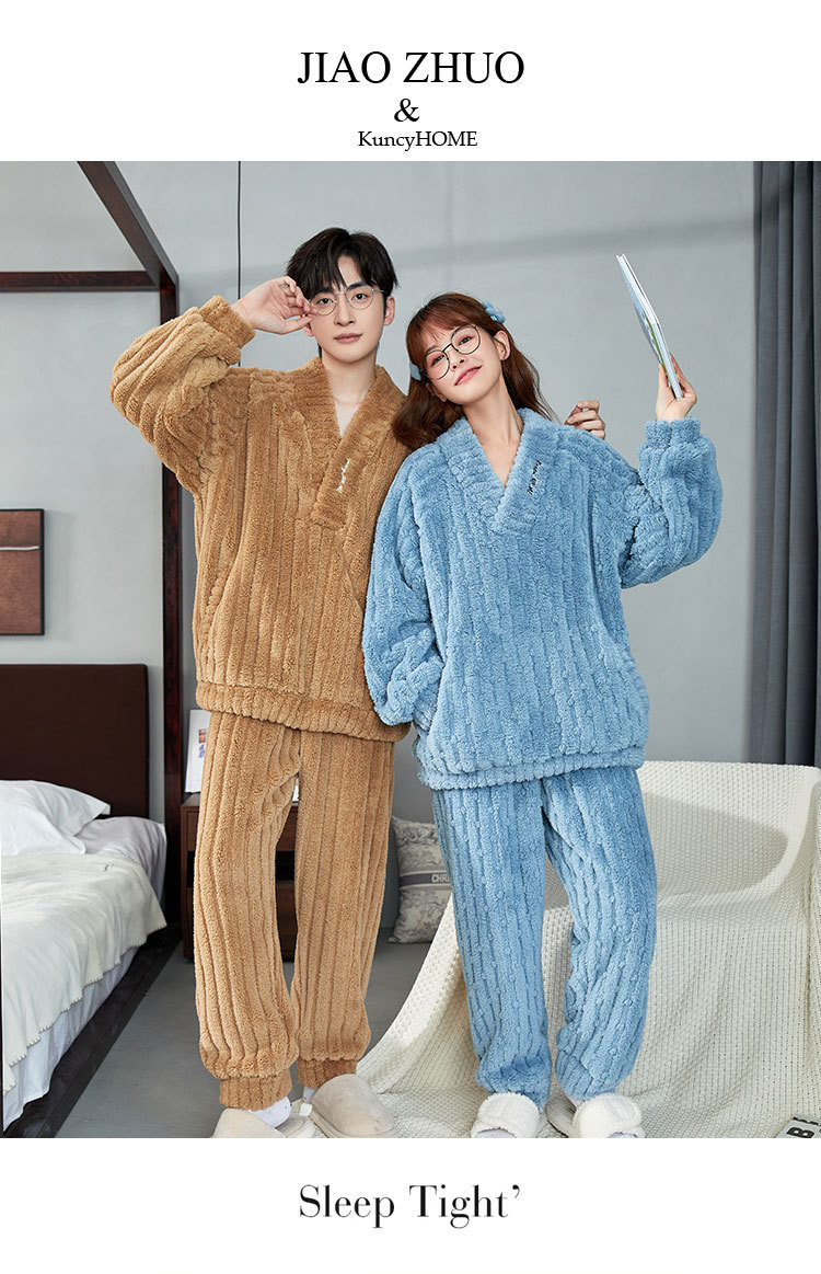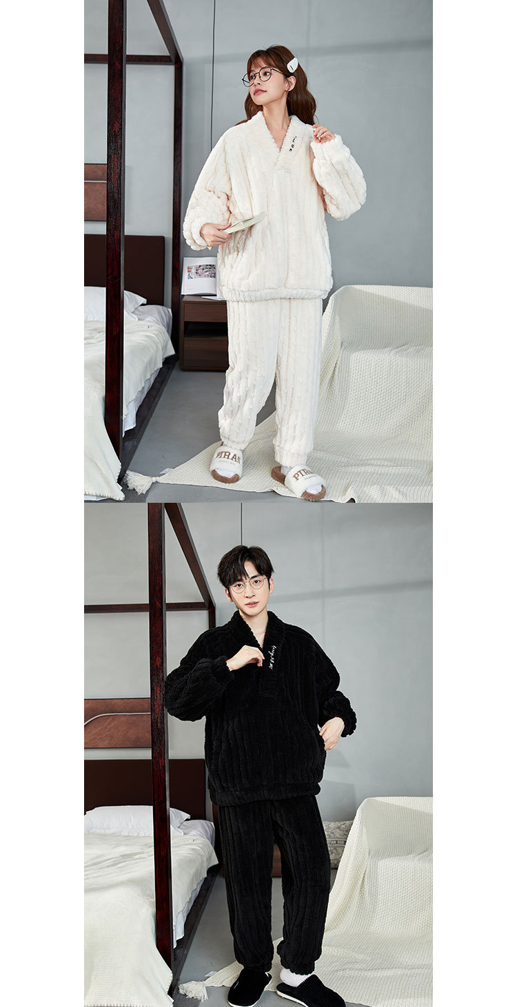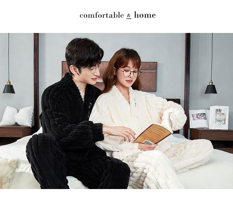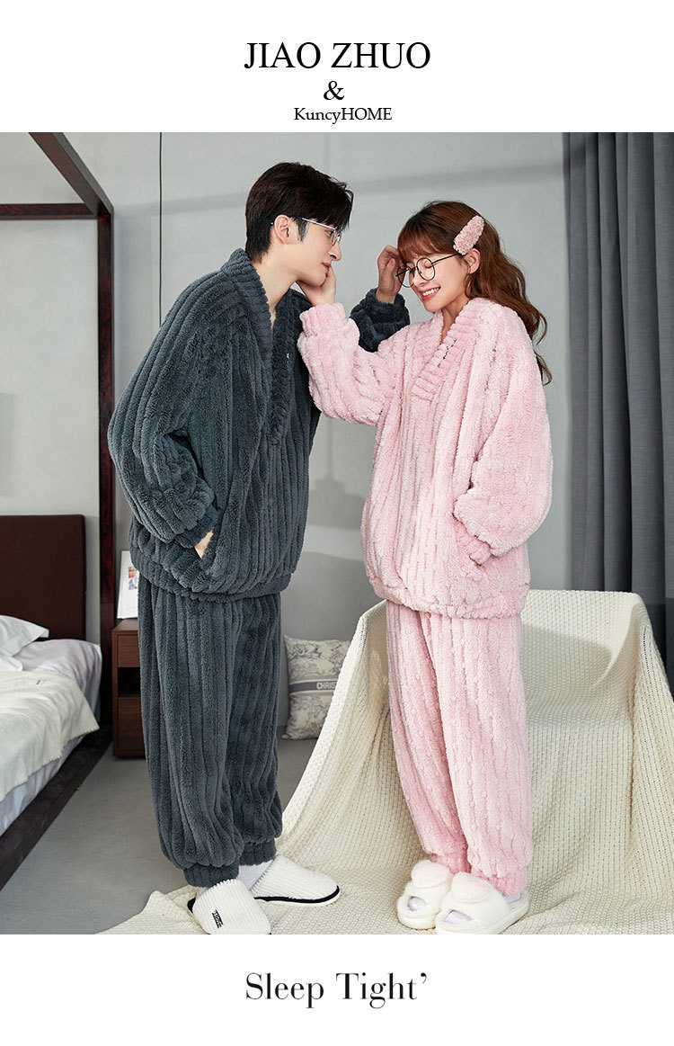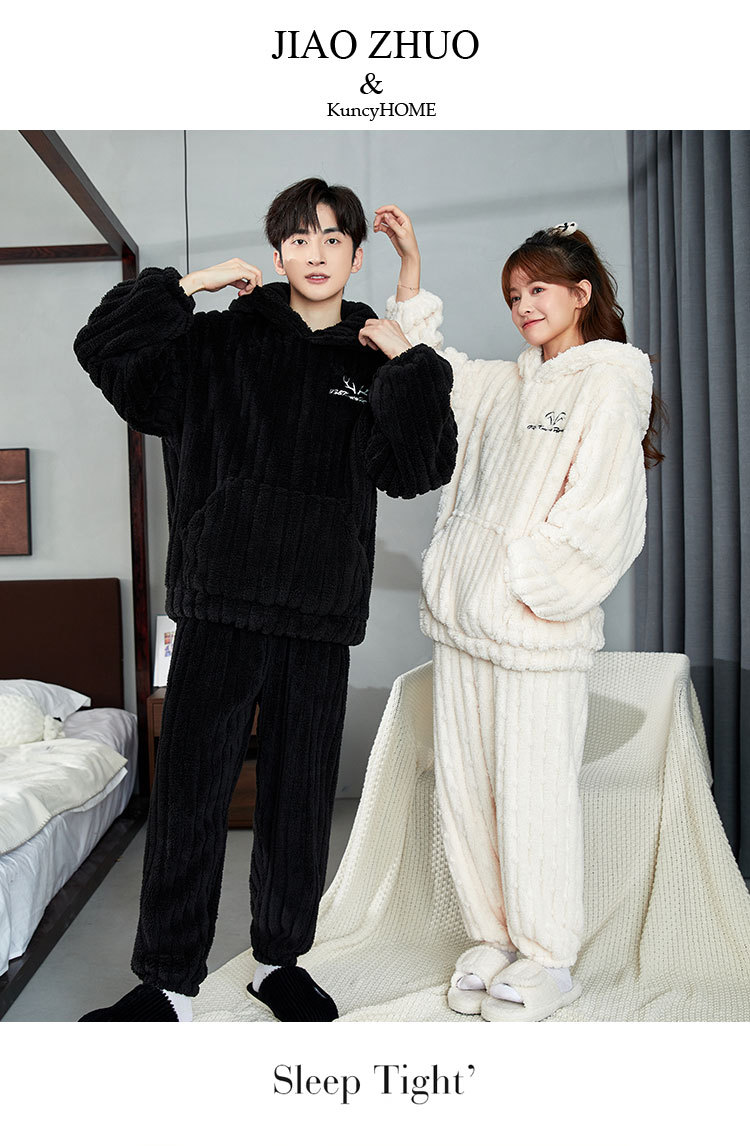 カップルパジャマ冬のサンゴのベルベットの厚いベルベットのフード付き男性女性秋冬フランネルの家庭服セット