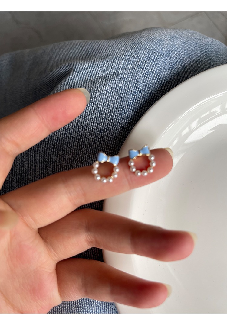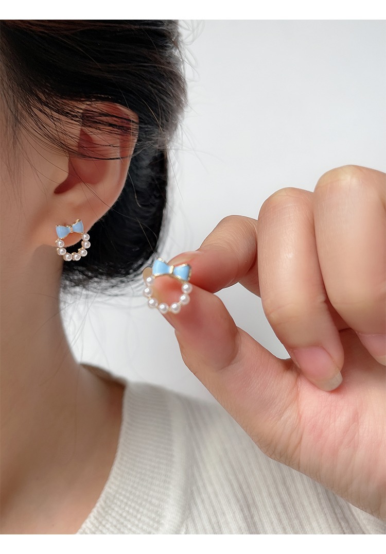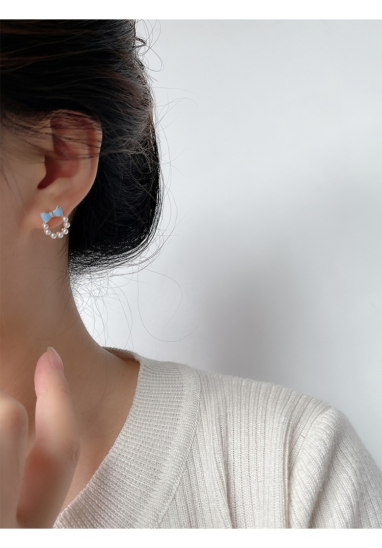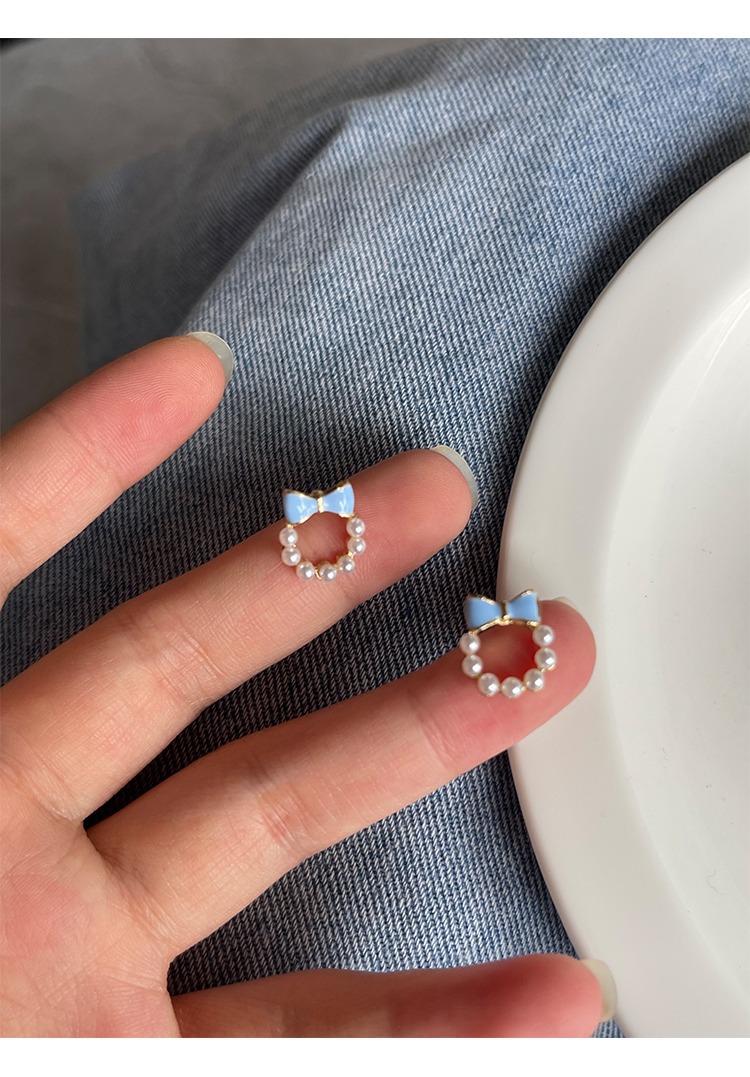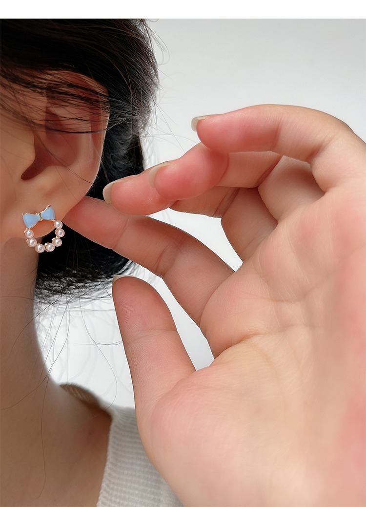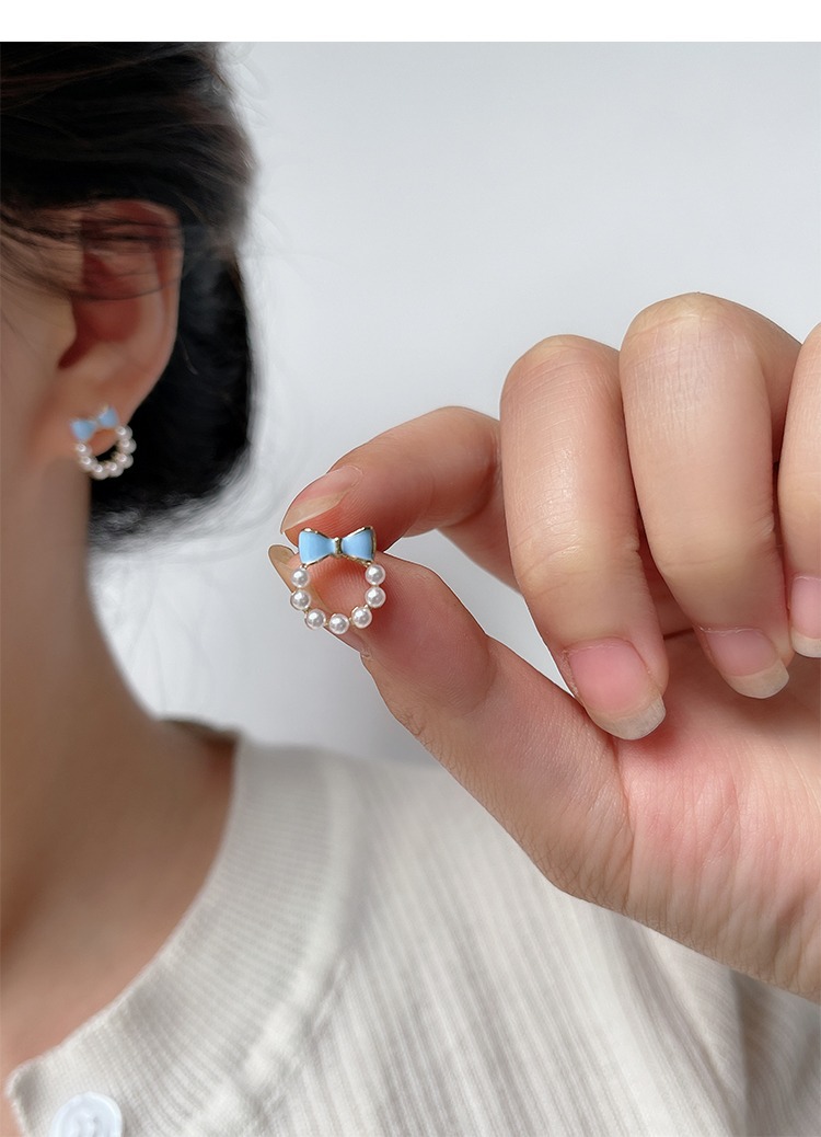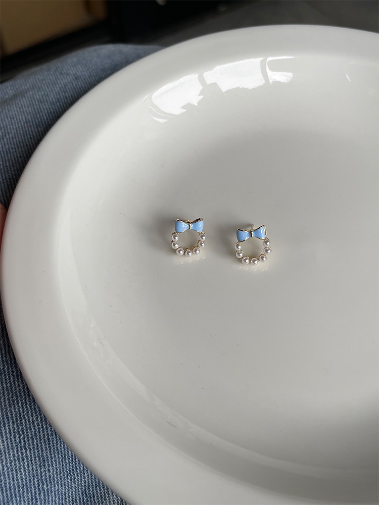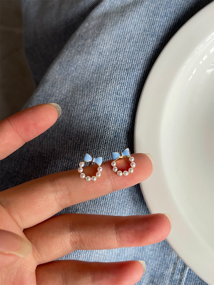 甘い青い蝶結びの真珠の耳の針の女性2023年の新型の潮のイヤリングの小さい大衆の設計感の耳の飾りの耳のクリップの女性