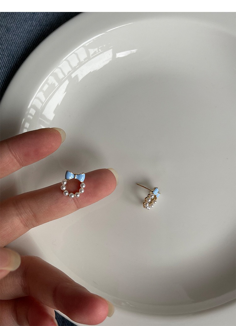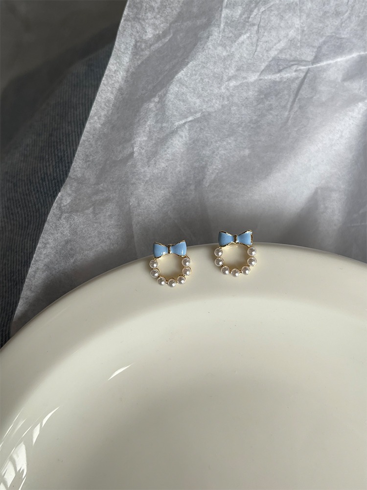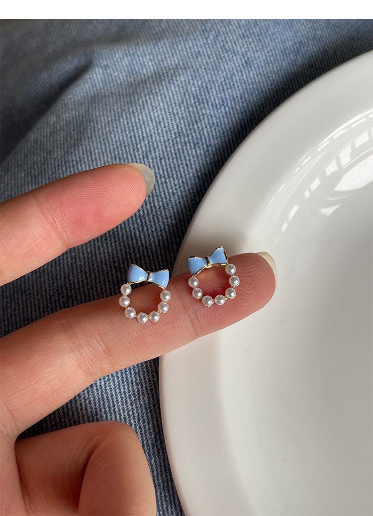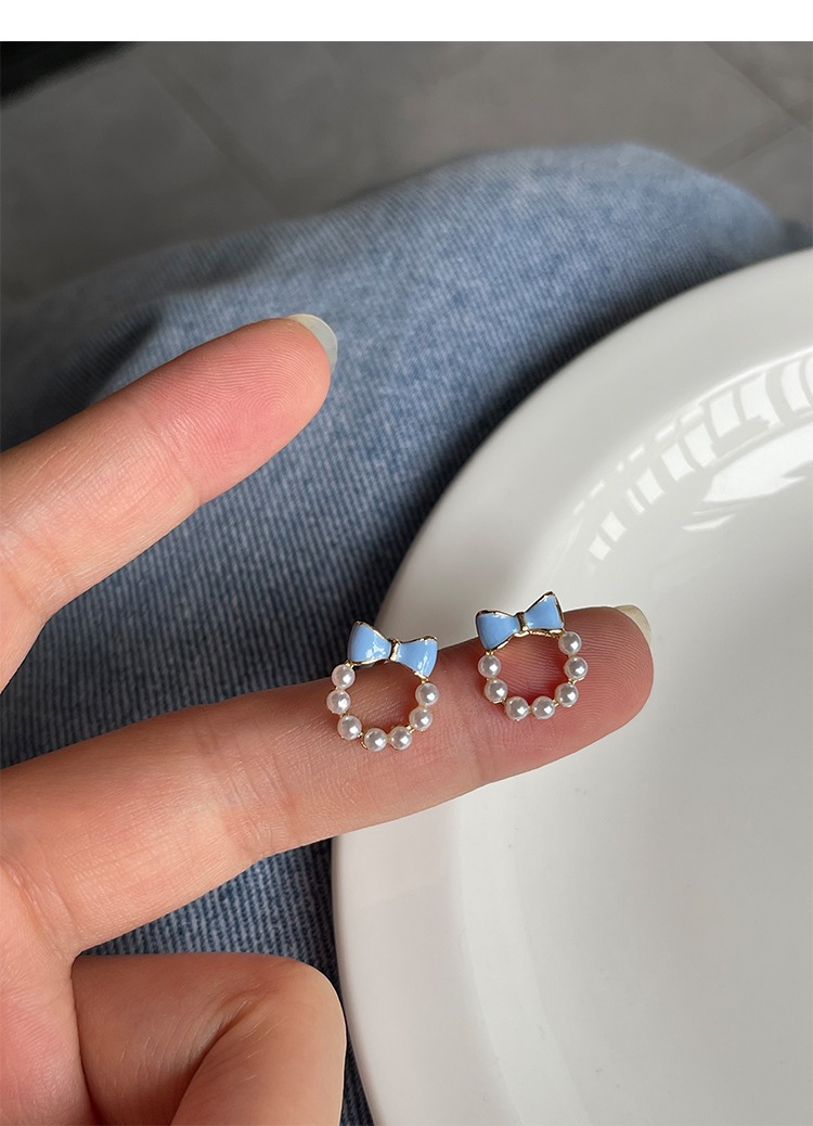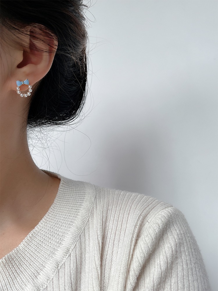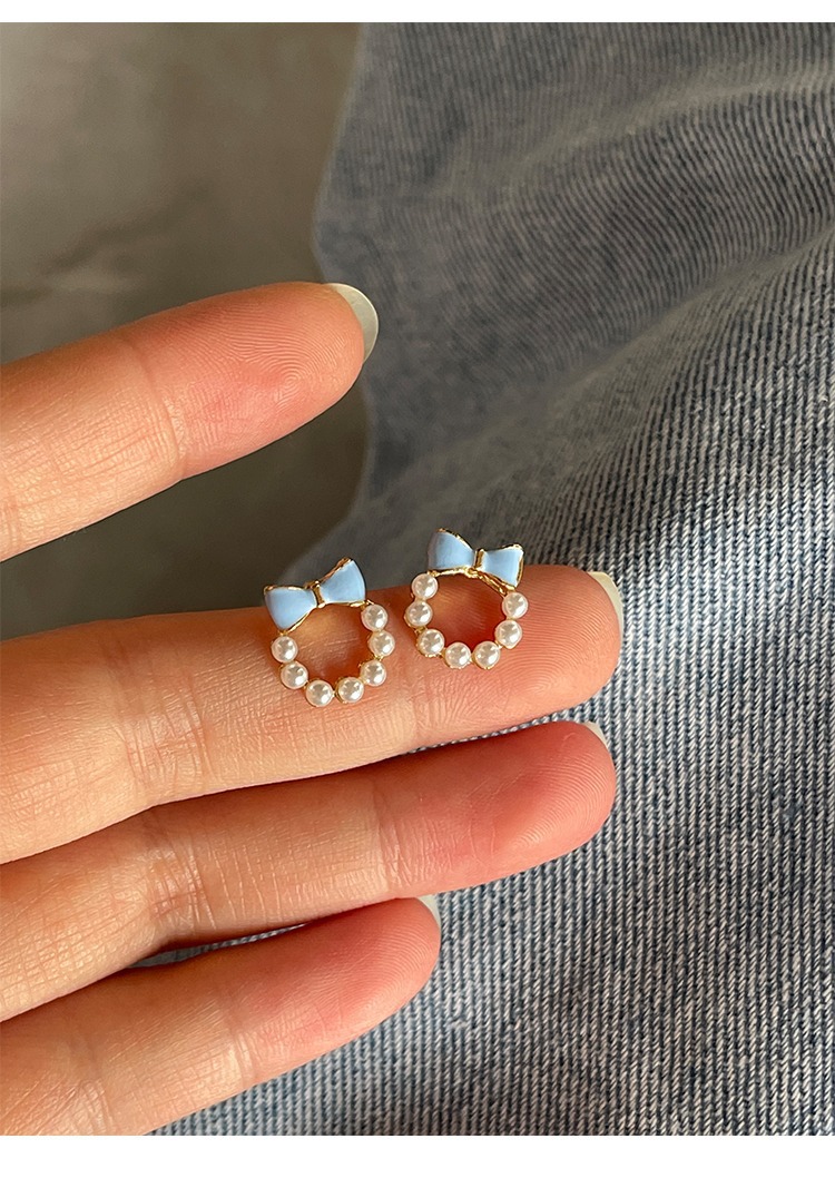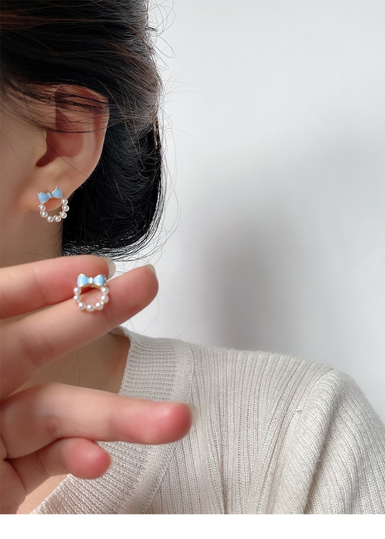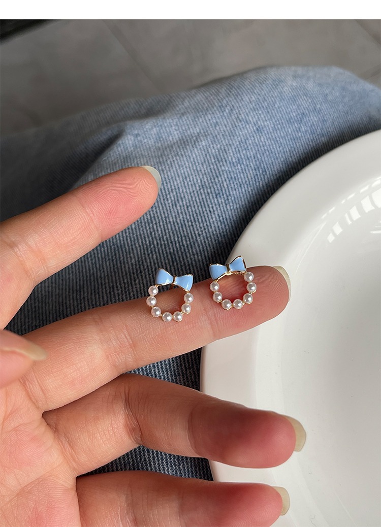 甘い青い蝶結びの真珠の耳の針の女性2023年の新型の潮のイヤリングの小さい大衆の設計感の耳の飾りの耳のクリップの女性
