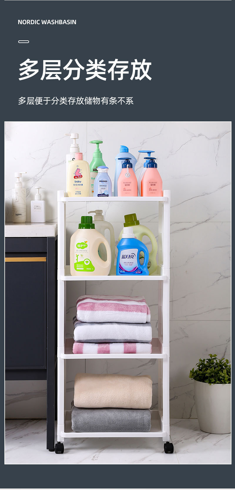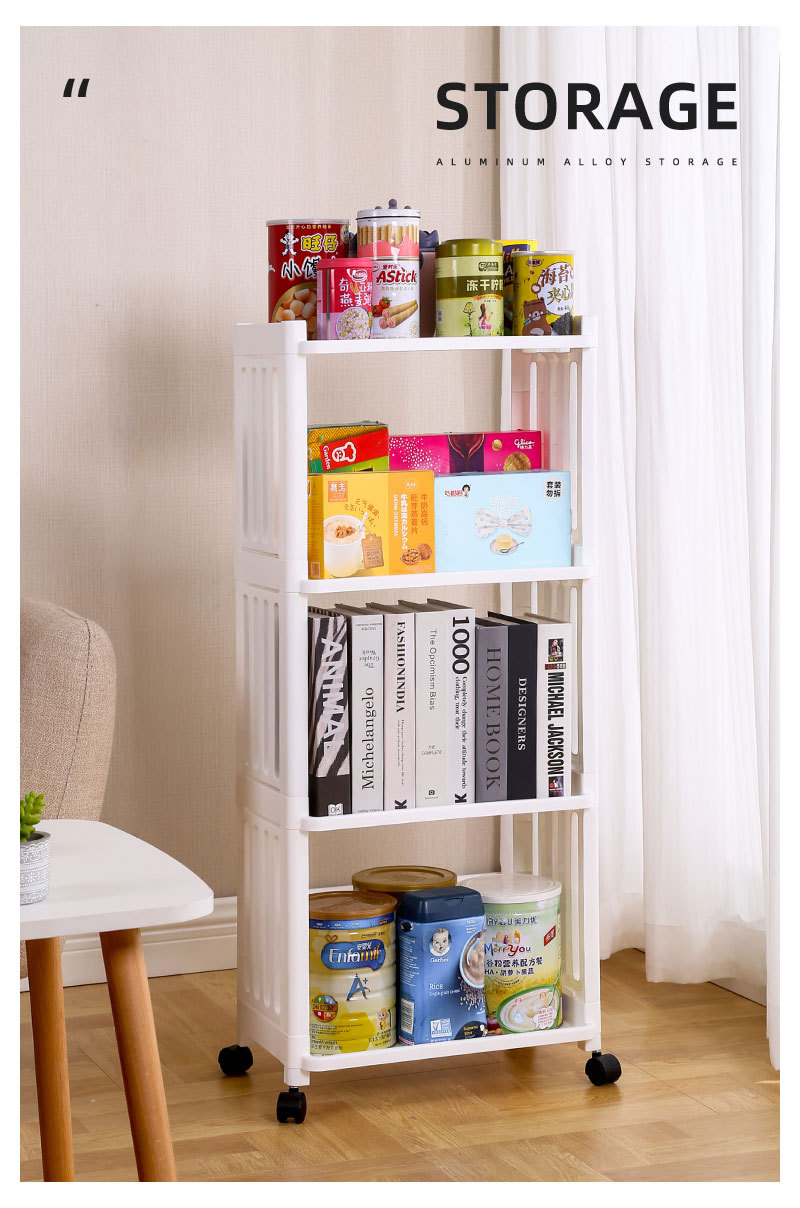 可動式小型カート収納ラック、スナックや書籍用収納棚、キッチンやバスルーム用フロア収納ラック、スナック用収納棚