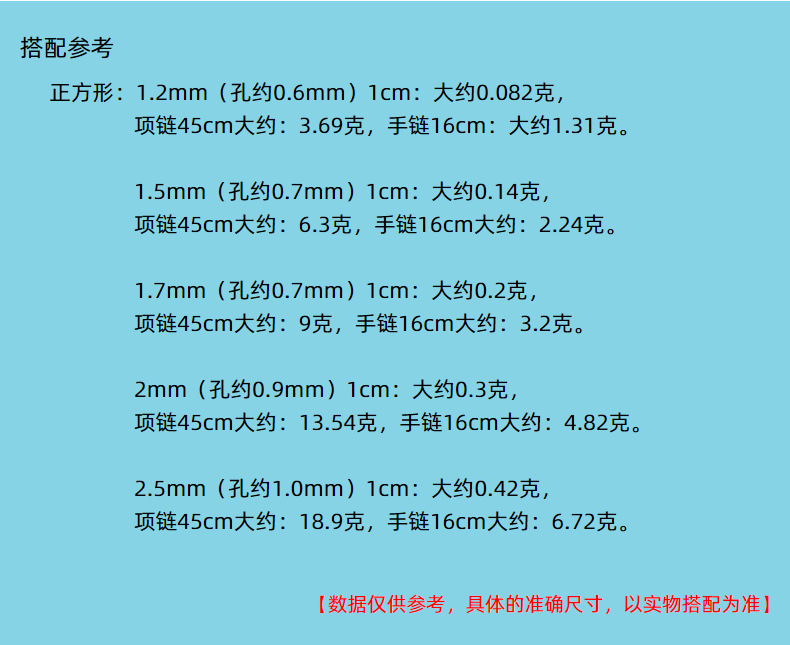 外径1.7mm * 0.85厚(1グラム価/約67匹),外径1.5mm * 0.8厚(1グラム価/約100匹),外径1.2mm×厚さ0.6(1gあたりの価格/約212個),外径2mm * 0.85厚(1グラム価格/約40匹),外径2.5mm×厚さ1.1(1gあたりの価格/約25枚)