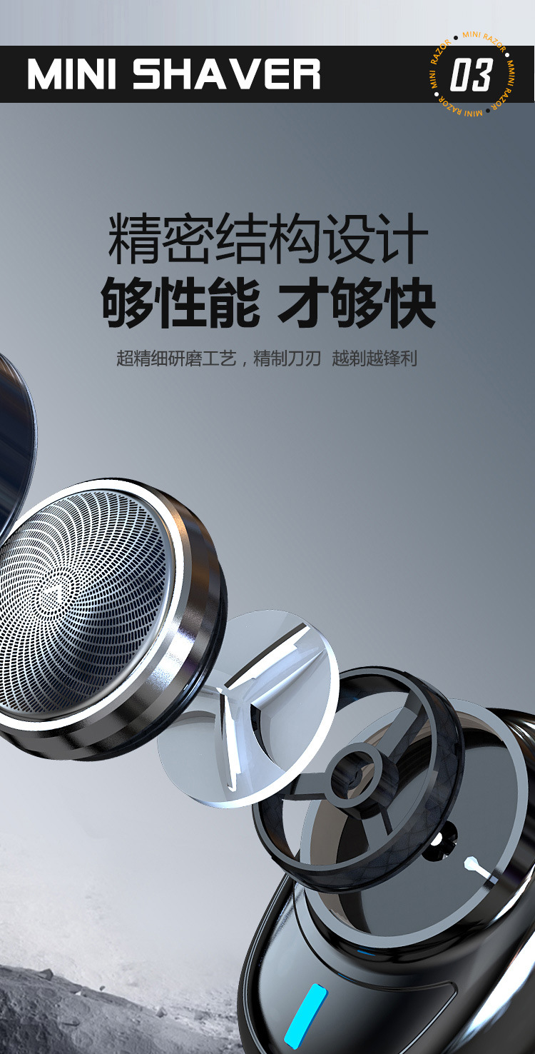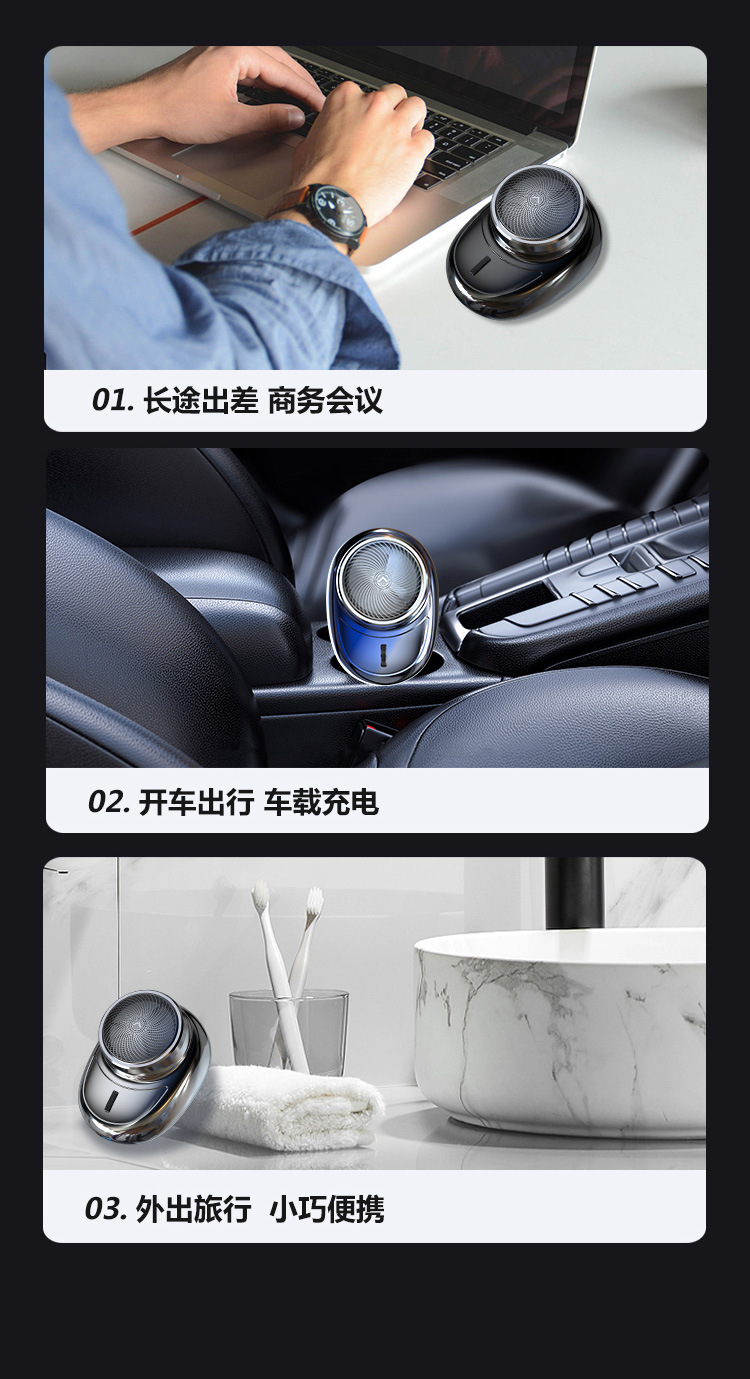 新型卵型ミニ電気シェーバー 車載用ポータブルシェーバー 水洗い可能 三枚刃 静音