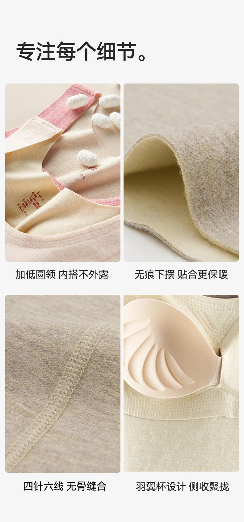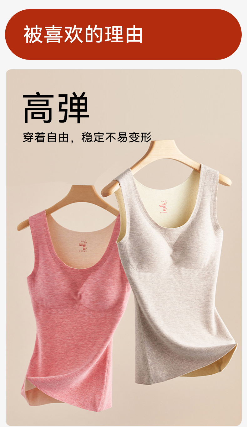 オウィジ 女性用デロン素材 胸パッド付き カップ付きベスト 裏起毛 ウールシルク ダブルフェイスフリース シームレス ベースレイヤー 保温