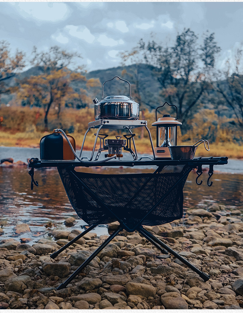 黒い戦術的なテーブルの網袋のテーブルのストーブ