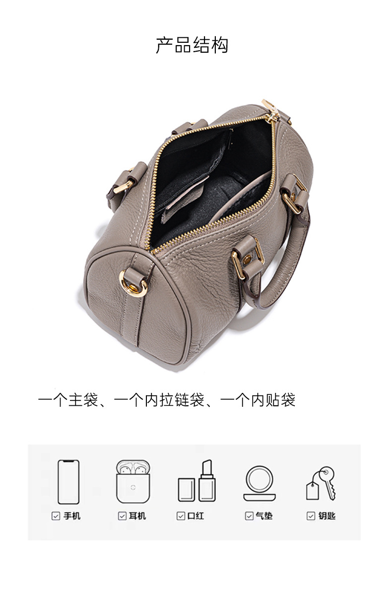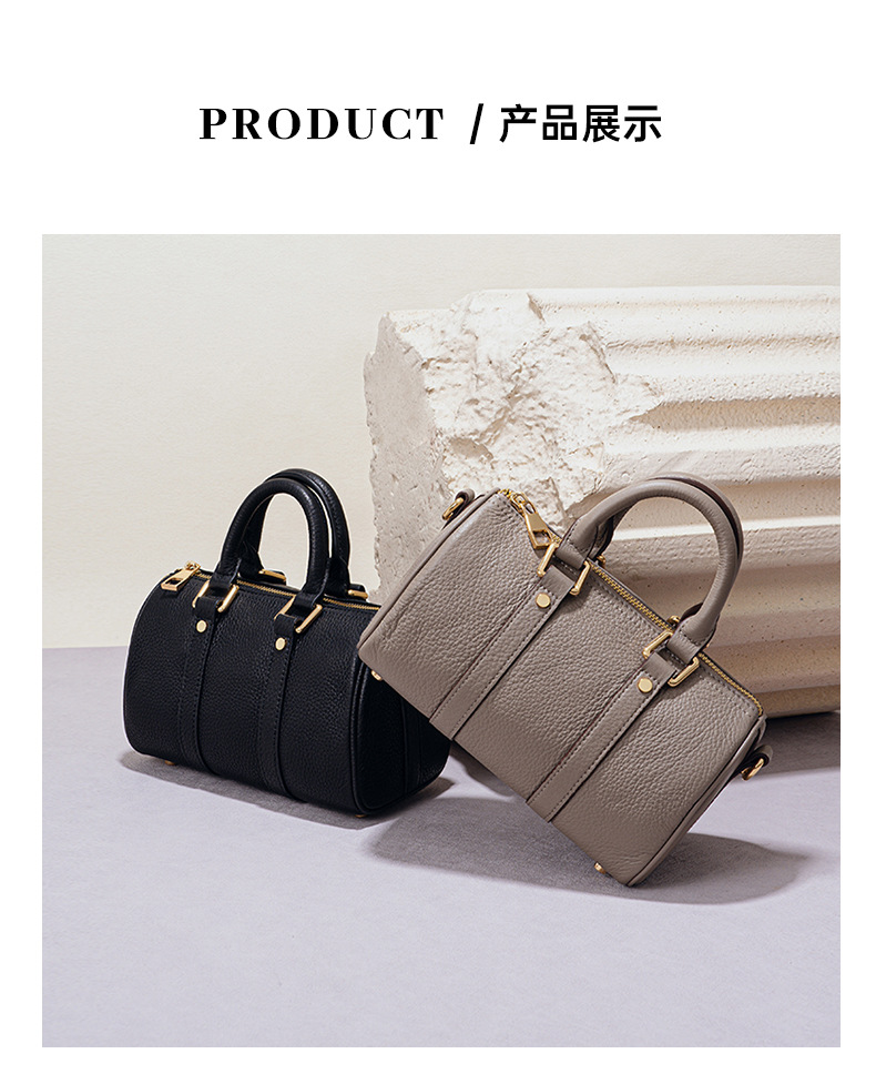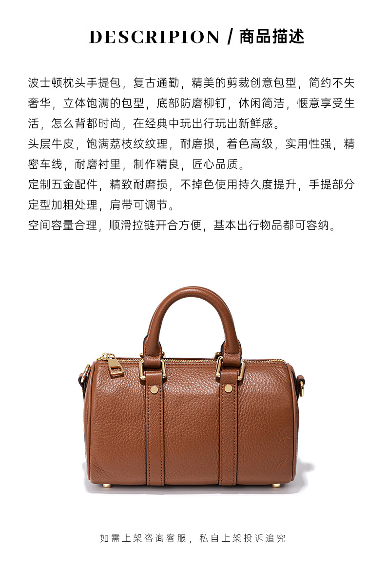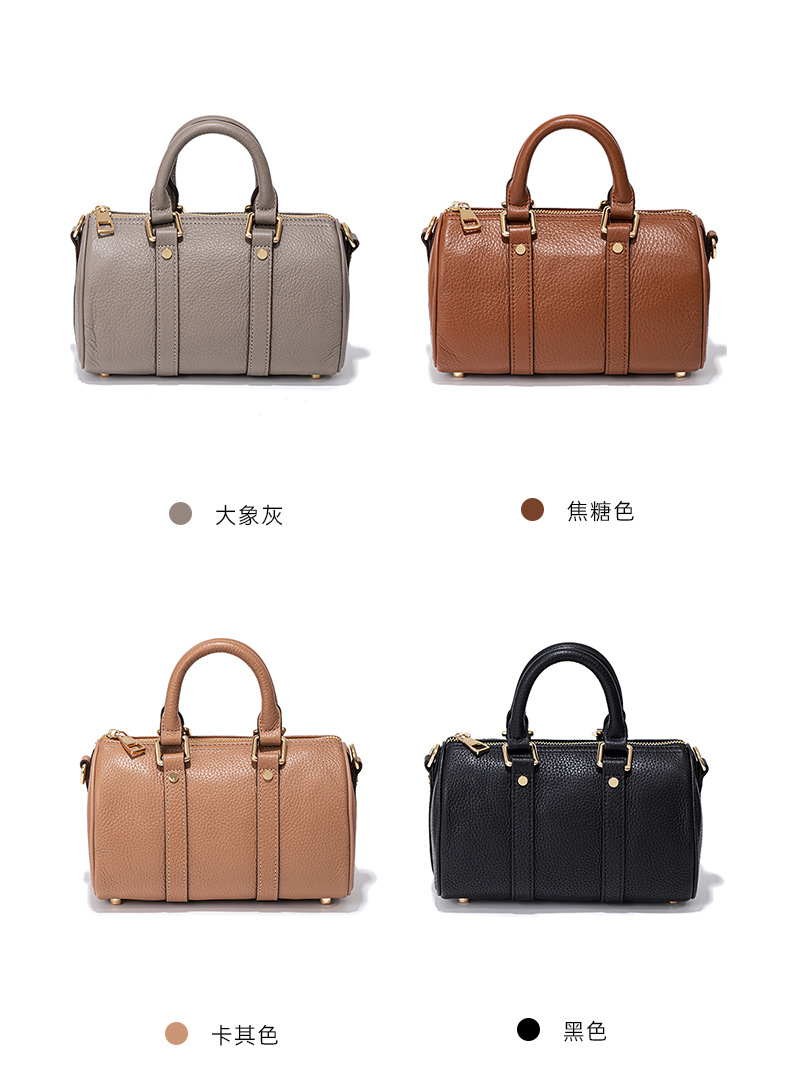 ボストンピローバッグ大衆デザイントップ層牛革復古風ハンドバッグ高級感ファッション百合斜めショルダーバッグ