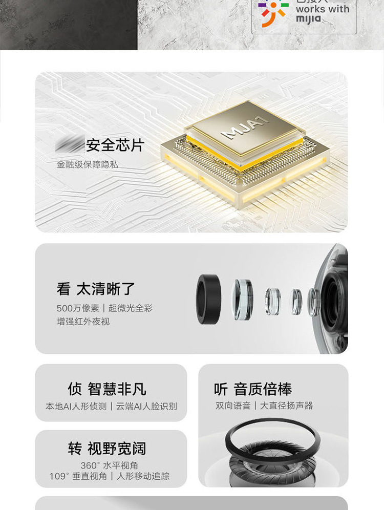 Xiaomi Mi スマートカメラ 3 3K高画質ナイトビジョンAI監視カメラ 人型検知機能付き