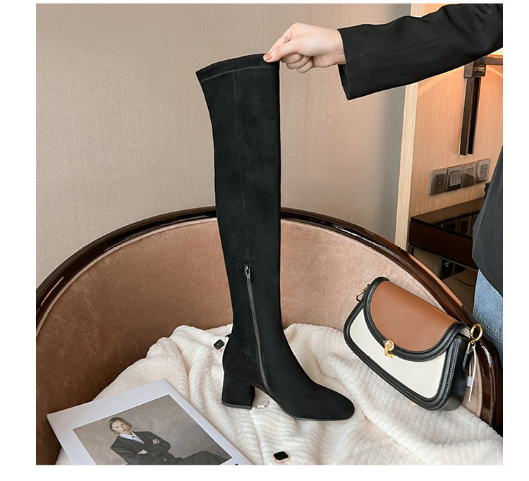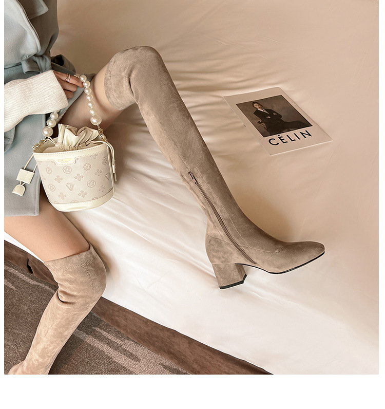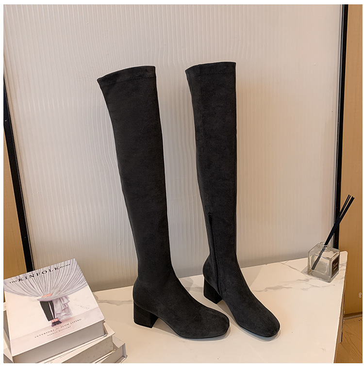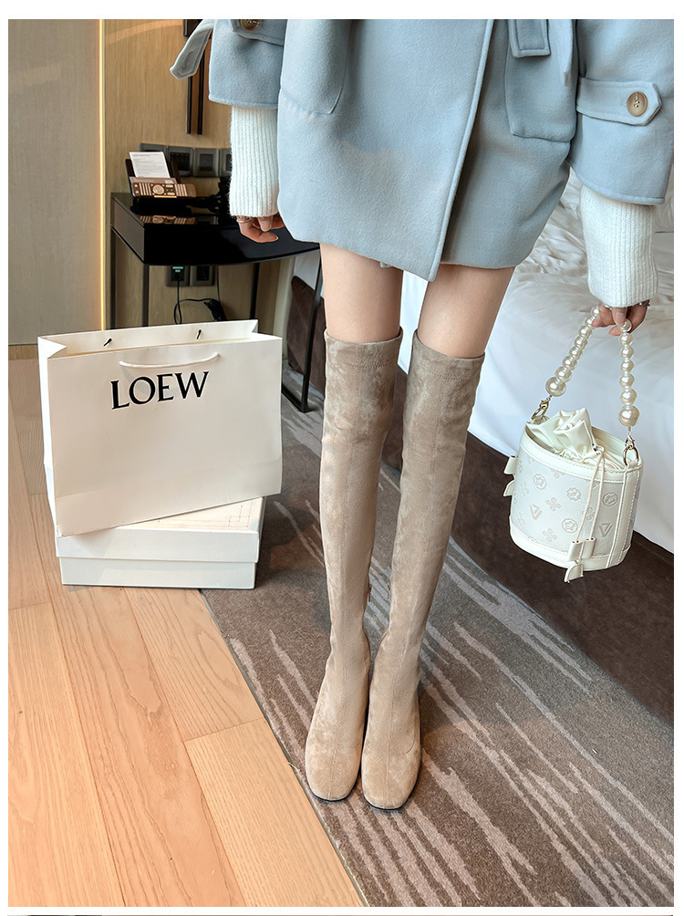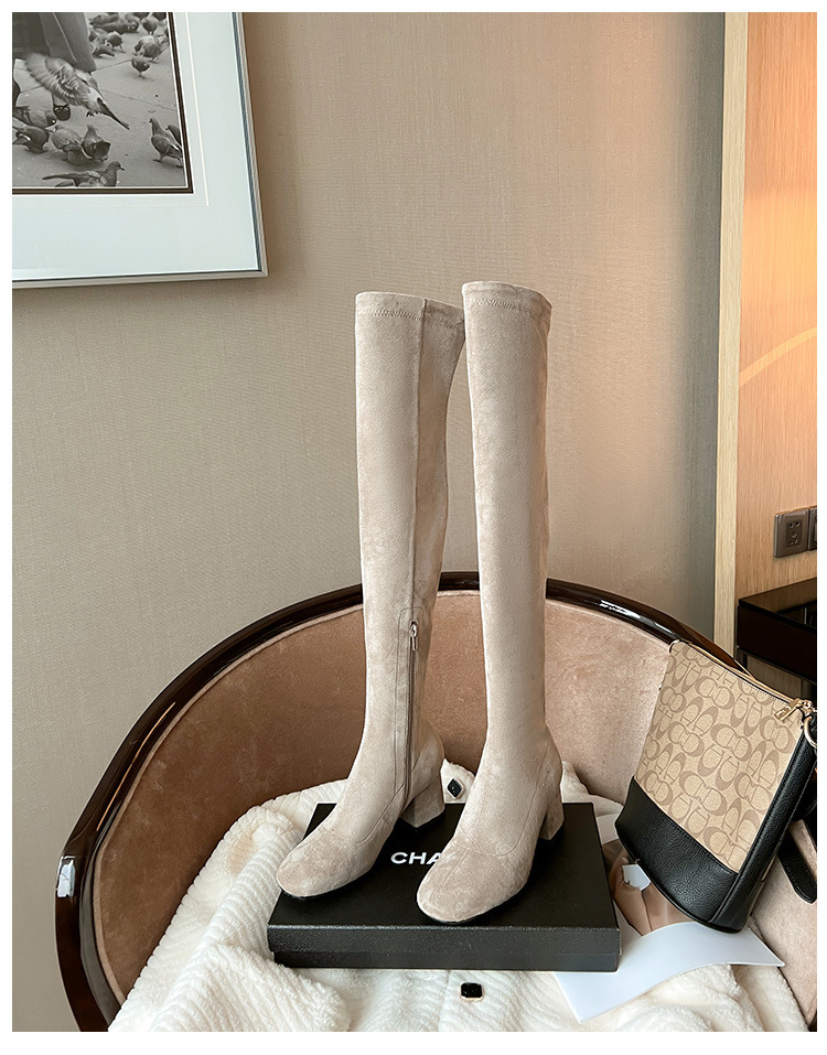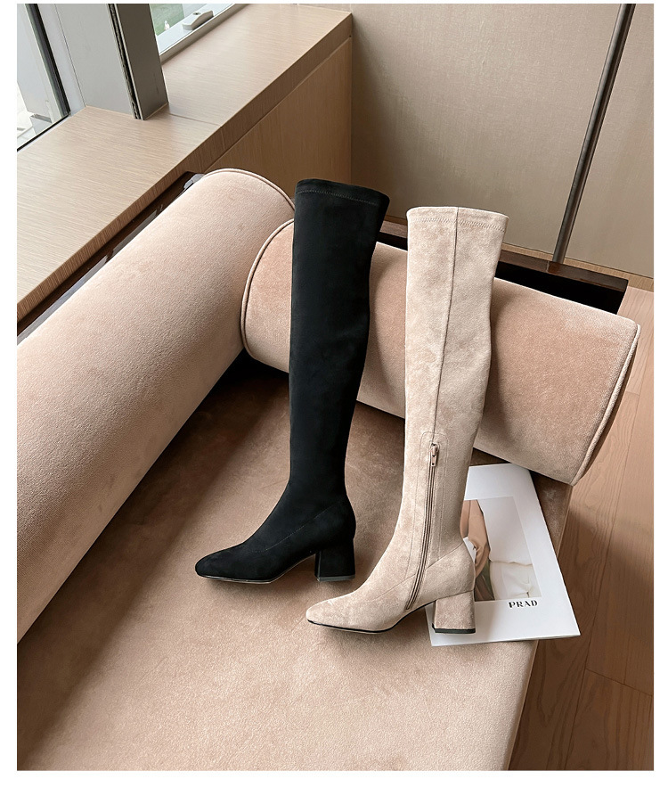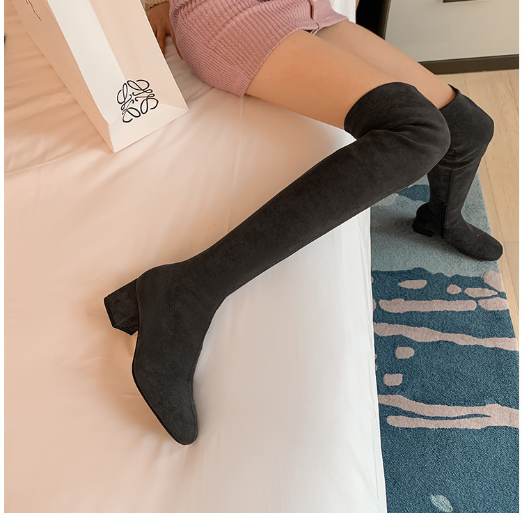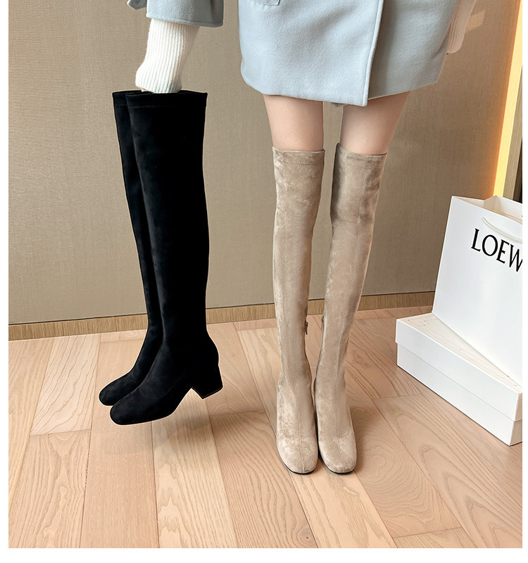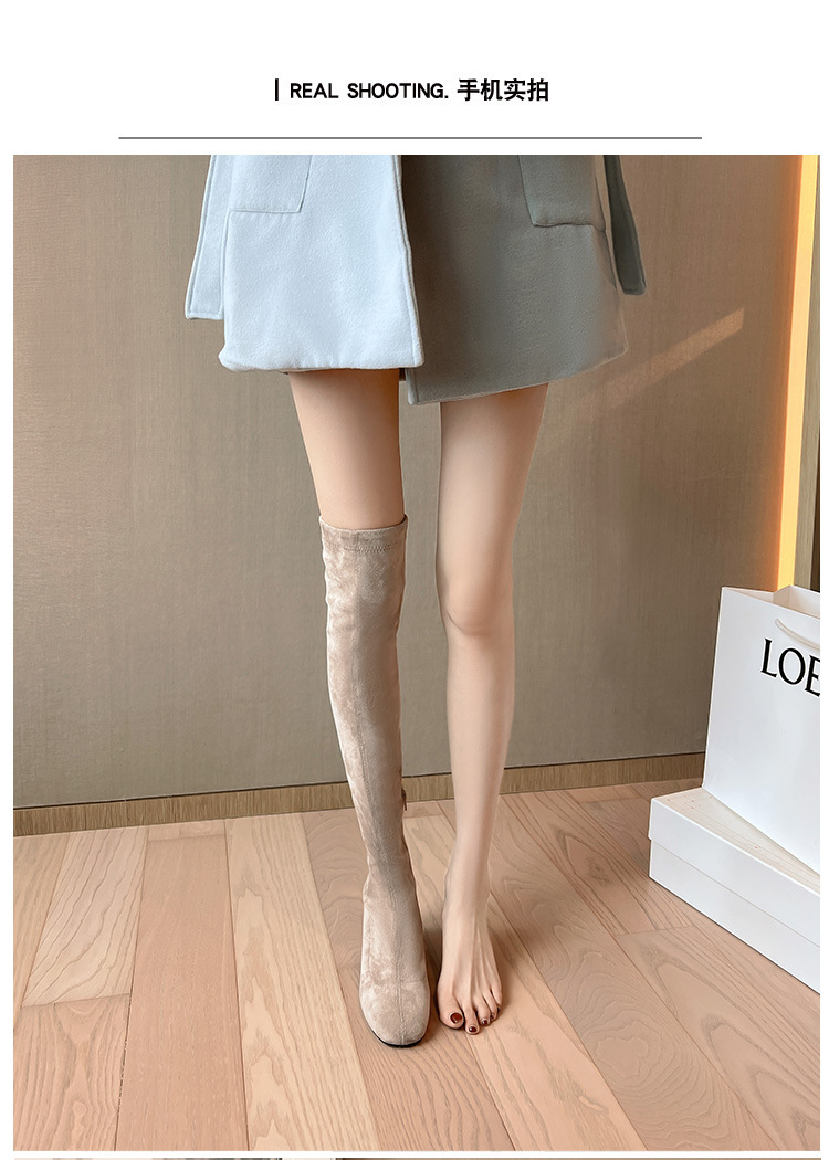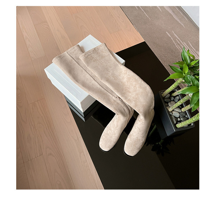 膝の靴の女性のハイヒールの靴の弾力性の靴のブーツのカーキ色のブーツのスエードのブーツの秋の冬のベルベットのブーツ