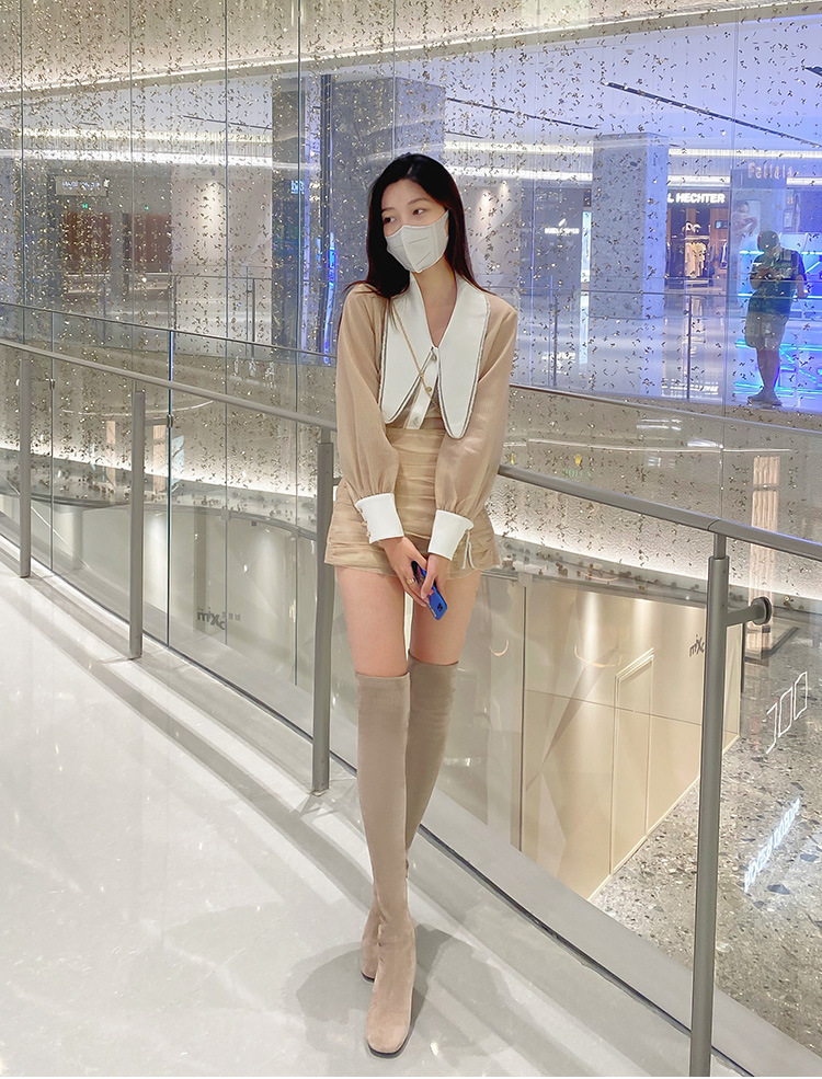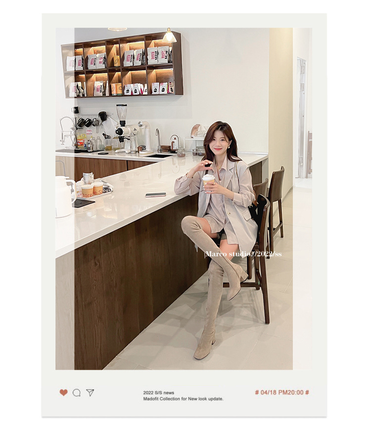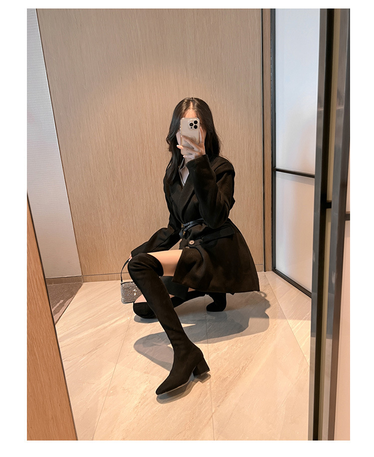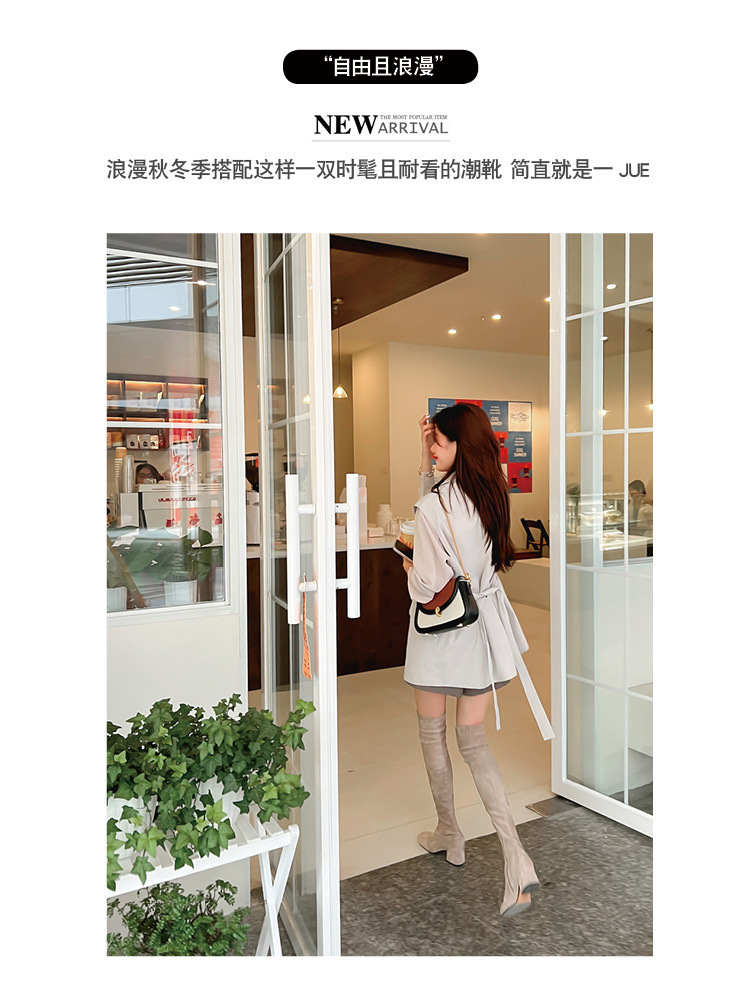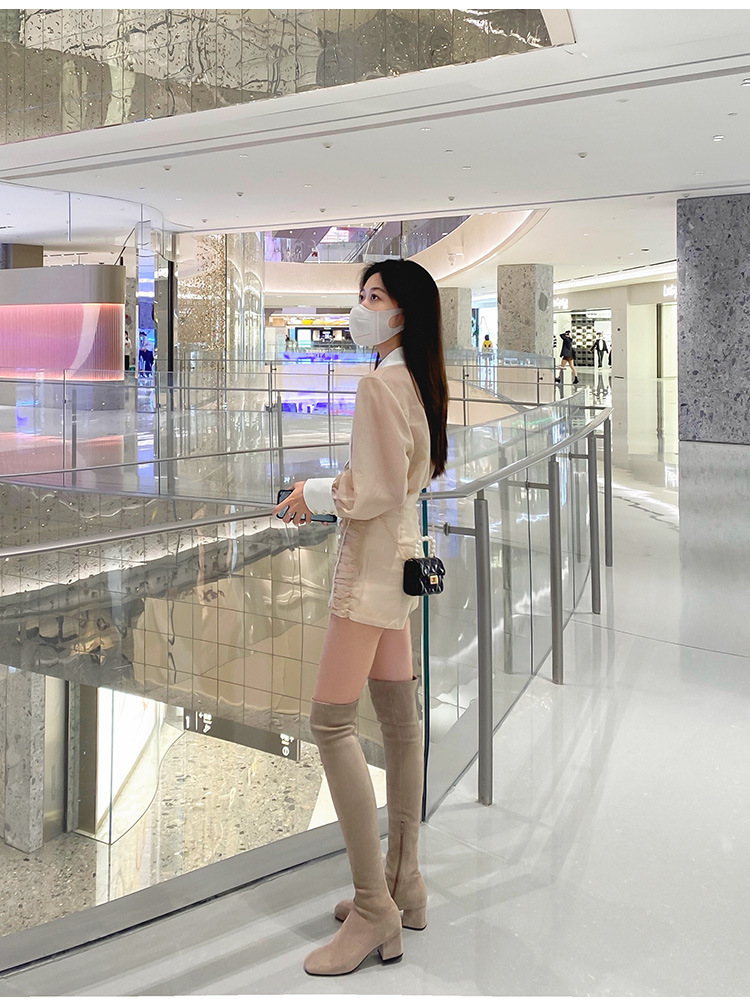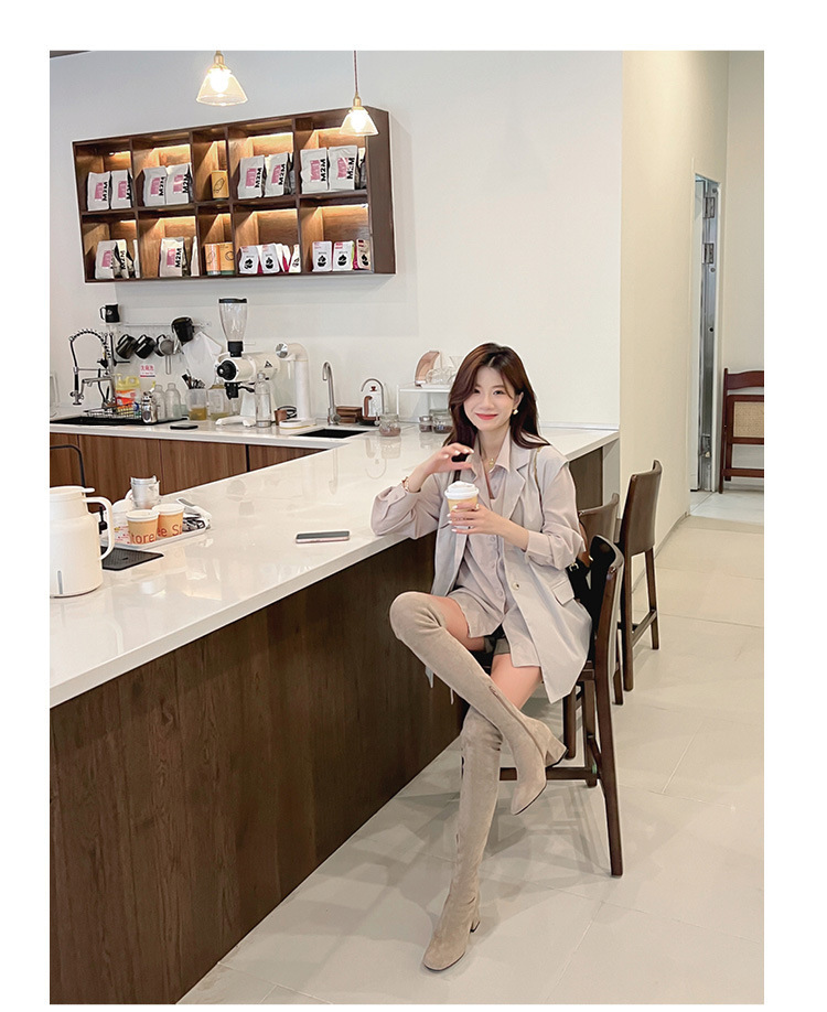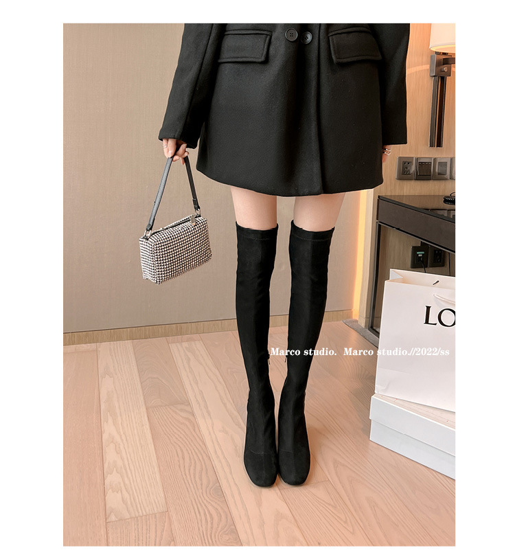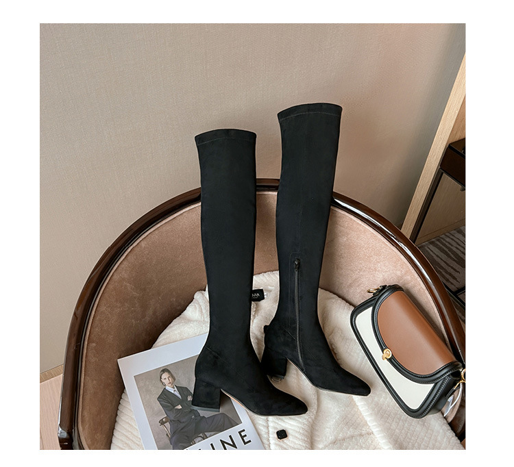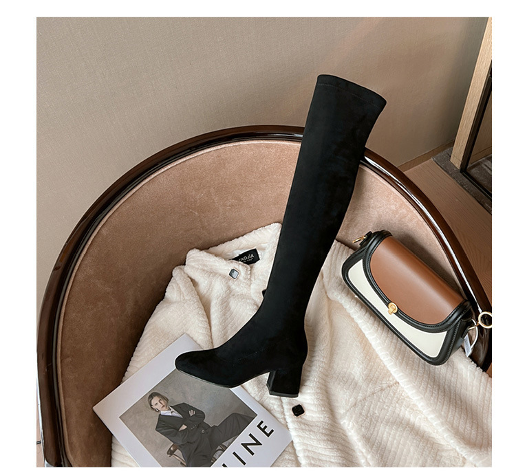 膝の靴の女性のハイヒールの靴の弾力性の靴のブーツのカーキ色のブーツのスエードのブーツの秋の冬のベルベットのブーツ