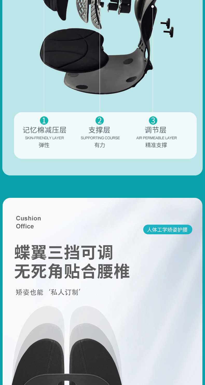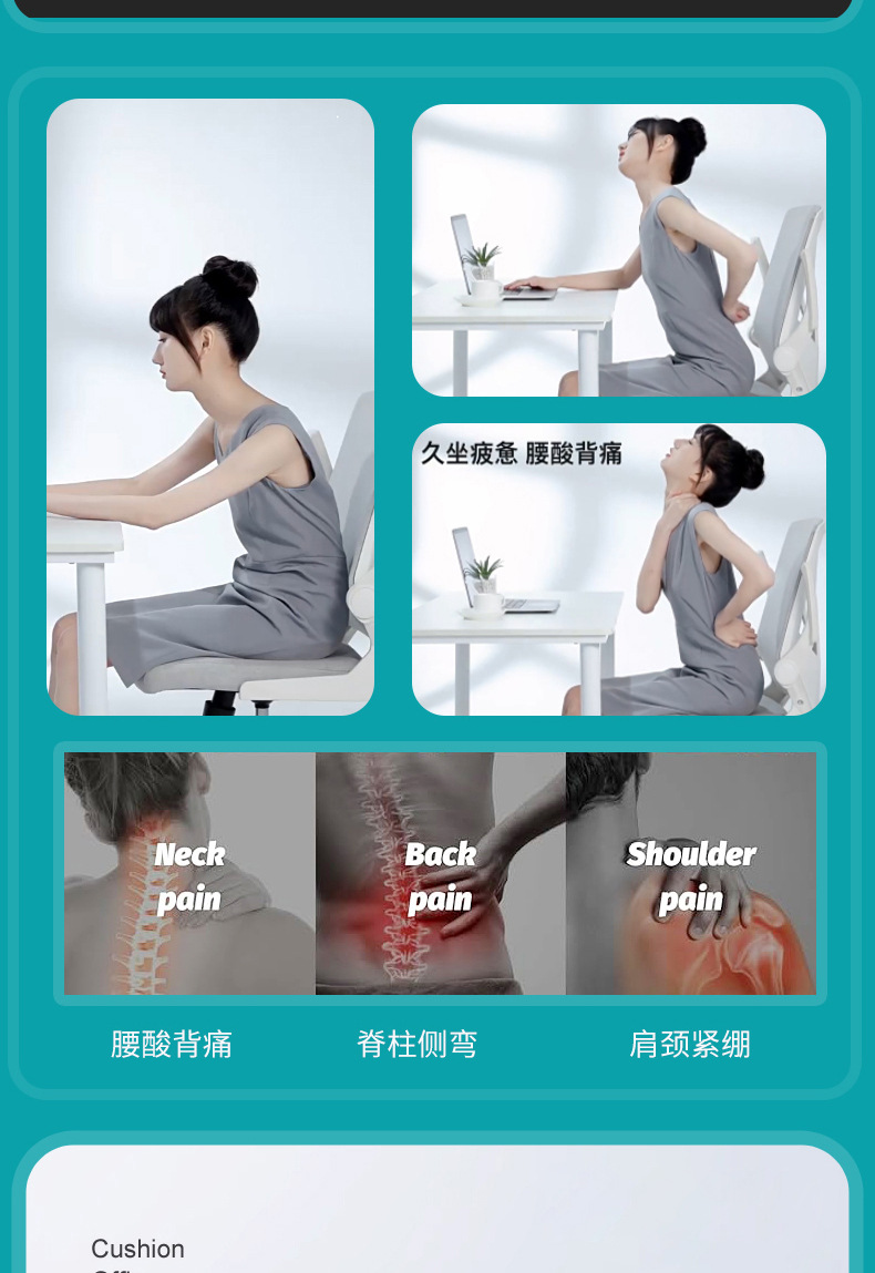 折りたたみ式腰痛対策クッション、人間工学に基づいた姿勢矯正、美尻効果、オフィスでの長時間座りがちな方のための神器、自宅での脊椎保護、ソファ用