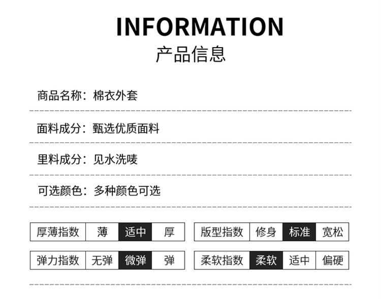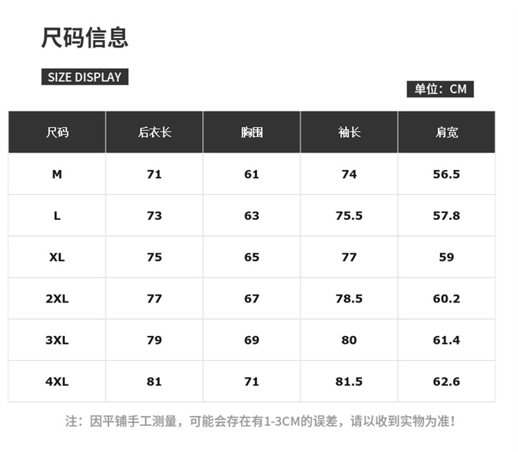 M(75 ~ 90斤程度),L(90 ~ 105斤程度),Xl (105-125斤程度),2xl (125 ~ 145斤程度),3xl (145 ~ 160斤程度),4xl (160 ~ 180斤程度)