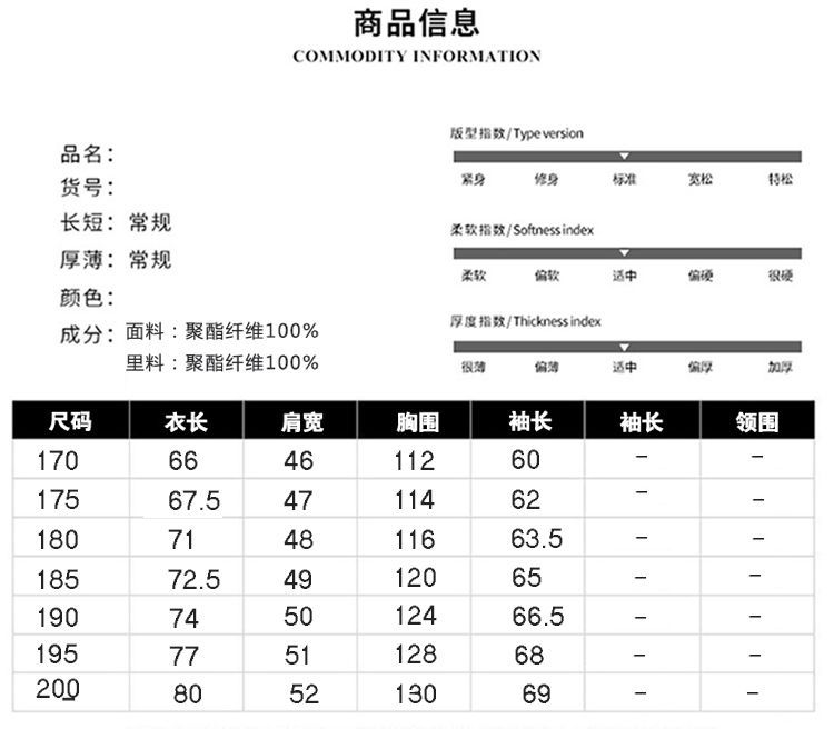 170 (推奨80-100斤),175 (推奨100-115斤),180 (推奨115-130斤),185 (推奨130-145斤),190 (推奨145-160斤),195 (推奨160-175斤),200 (推奨175-195斤)