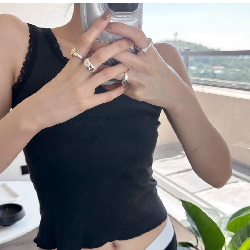 日本emシンプル星個性かわいい丸いデブ925銀金メッキファッション指輪厚幅版カップル指輪