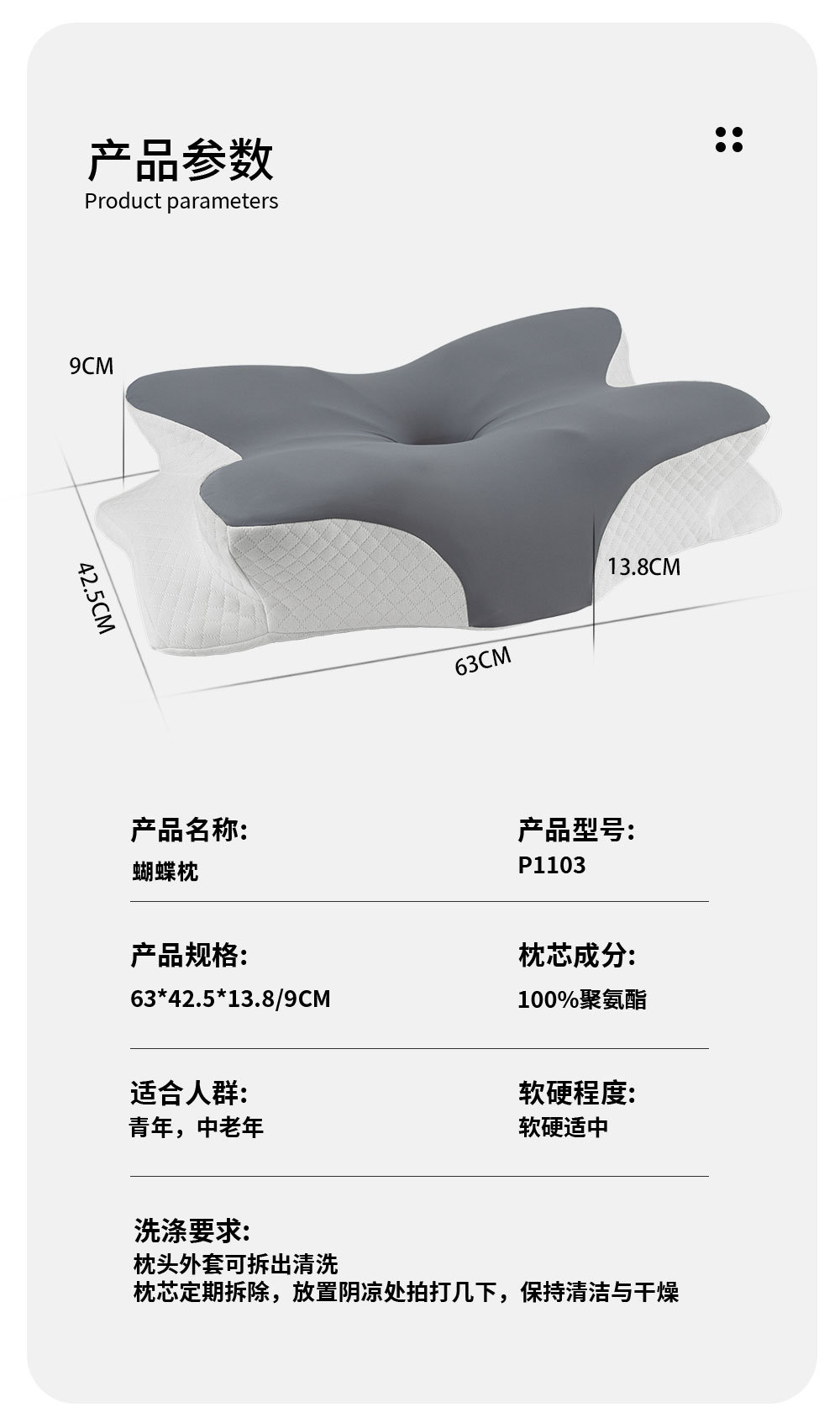 P1103 レギュラーモデル 63×42.5×13.8/9CM,P1103S ローピローモデル: 62*41.5*11/7CM