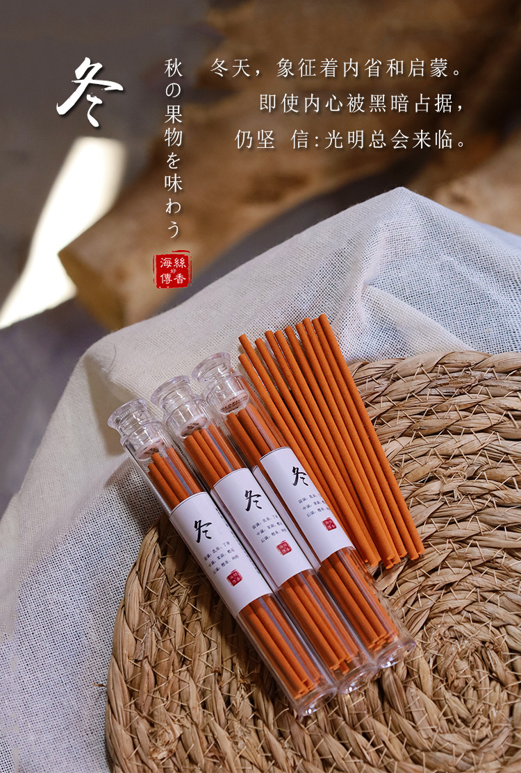 4、冬 调性:前调:乳香 丁香;中调:茉莉、橙花;后调:檀香、肉桂 5、旷野 前调:香柠檬;中调:薰衣草、花椒、八角肉桂;后调:龙涎香、香草