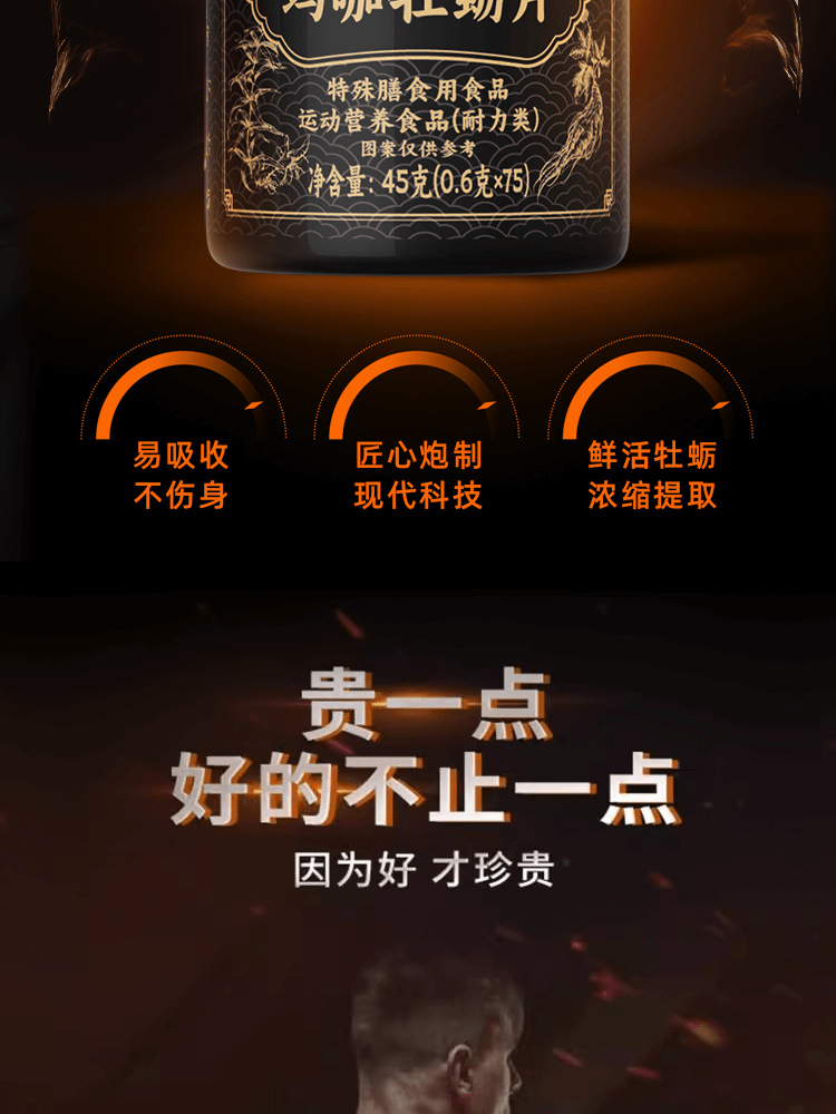 高麗人参、タデ、鹿ディック、マカ、牡蠣スライス 45g (0.6g/スライス*75 スライス/ボトル)