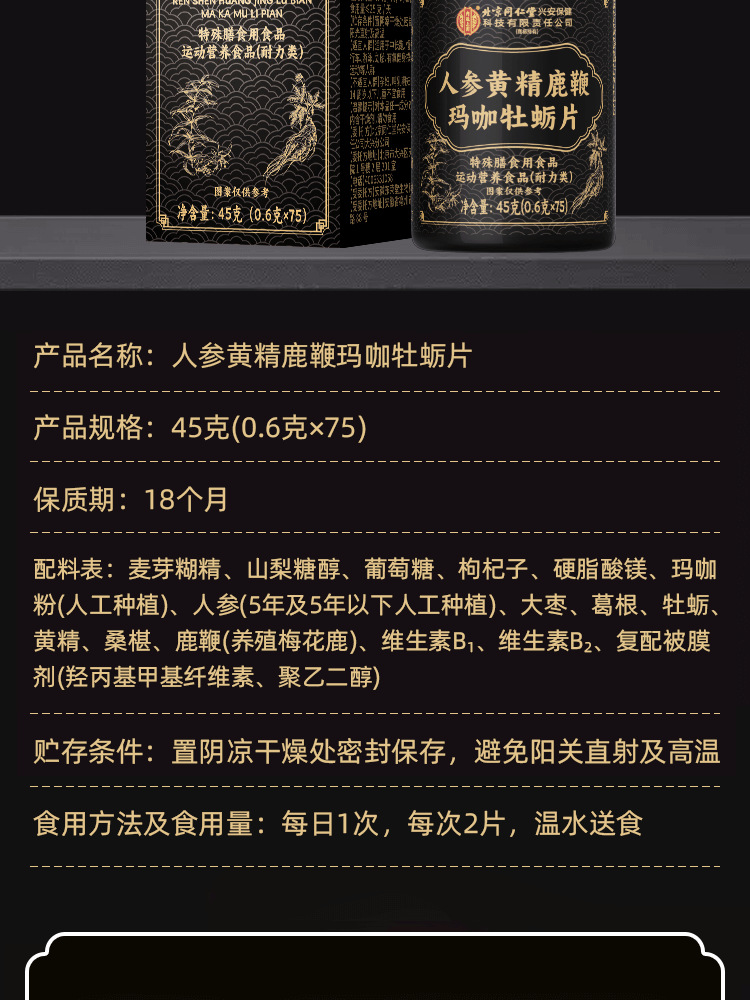 北京同仁堂内廷上用人参鹿鞭マカ黄精牡蠣錠成人男性用クコ圧縮錠キャンディー