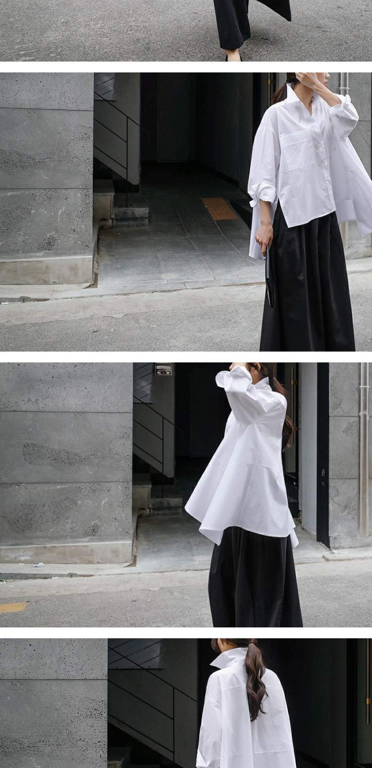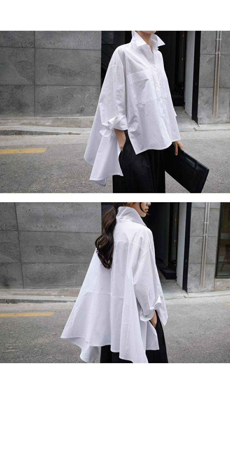 春秋の服の新型の白いシャツの女性の韓国版のゆったりしている大きいサイズのマント型の長袖の不規則なシャツのファッション的な上着