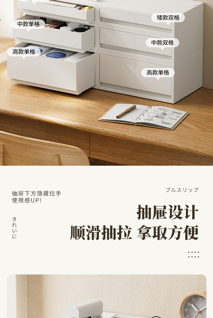 趣纳日式デスクトップ収纳ボックス高颜値整理プラスチック引き出し式収纳デスクA4纸収纳引き出し
