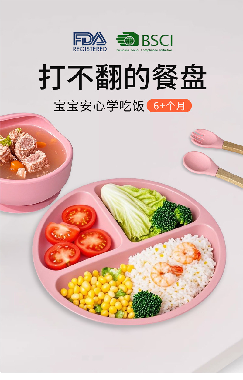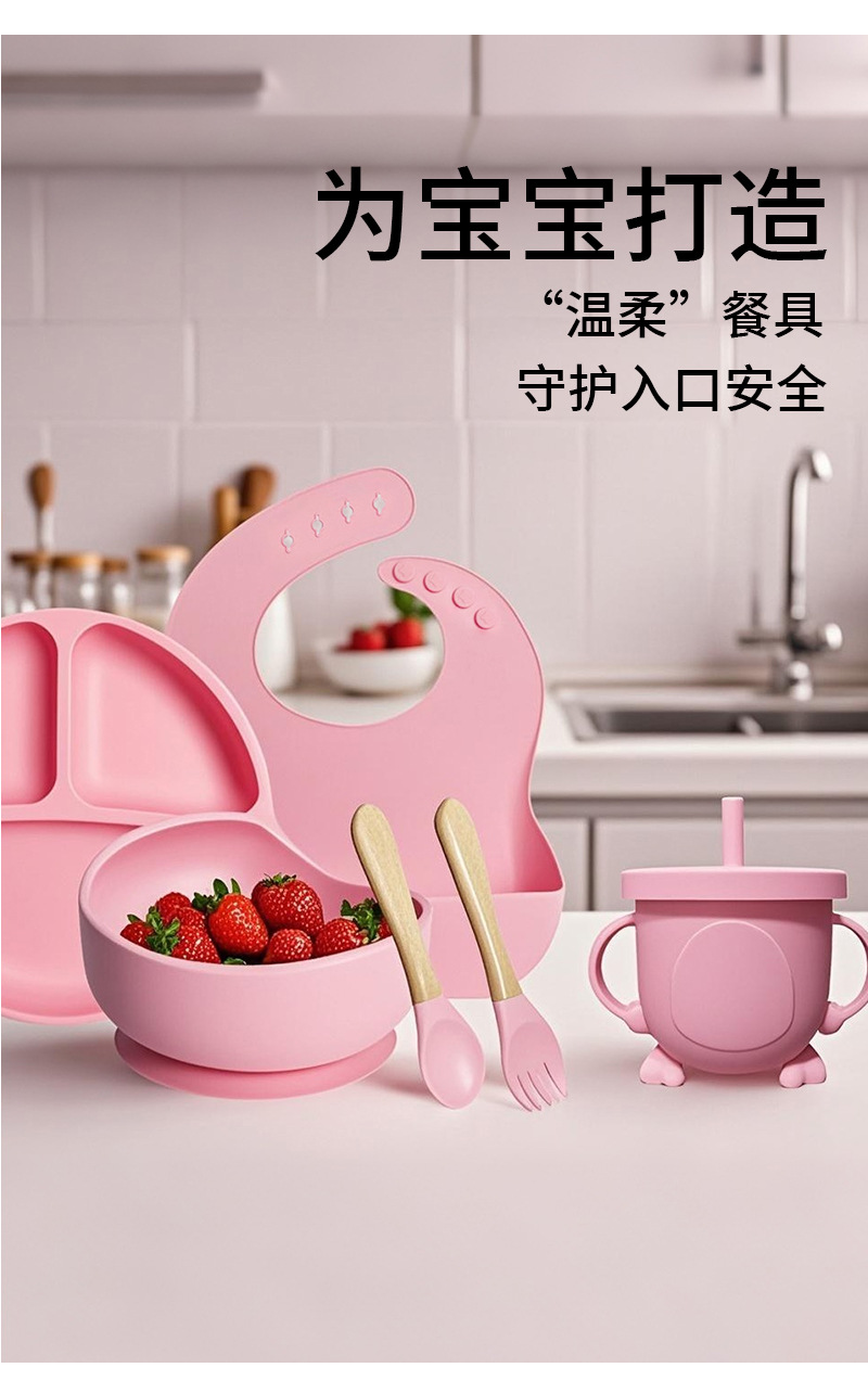 Amazon ベストセラー子供用食器セットスマイリーフェイスシリコンディナープレート離乳食ボウルよだれかけスプーンとフォーク卸売