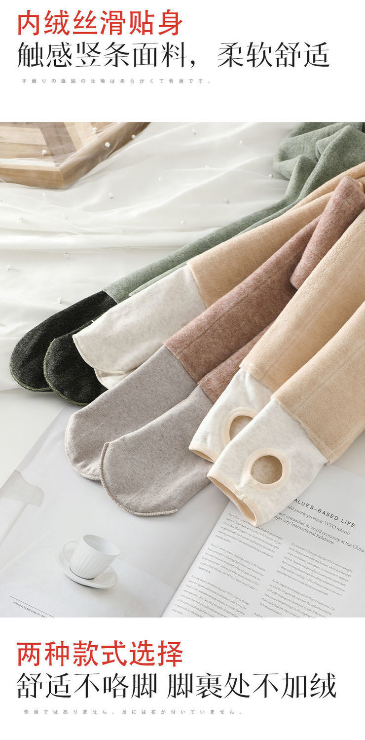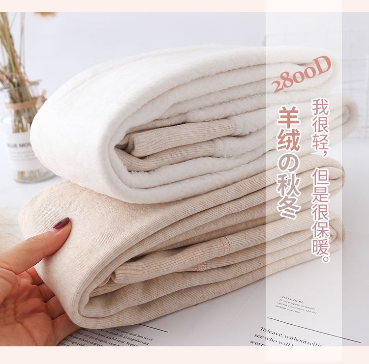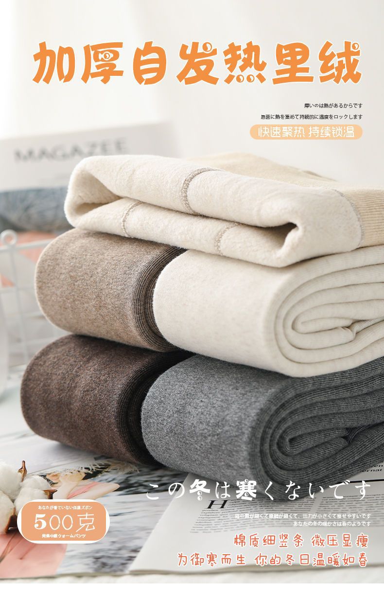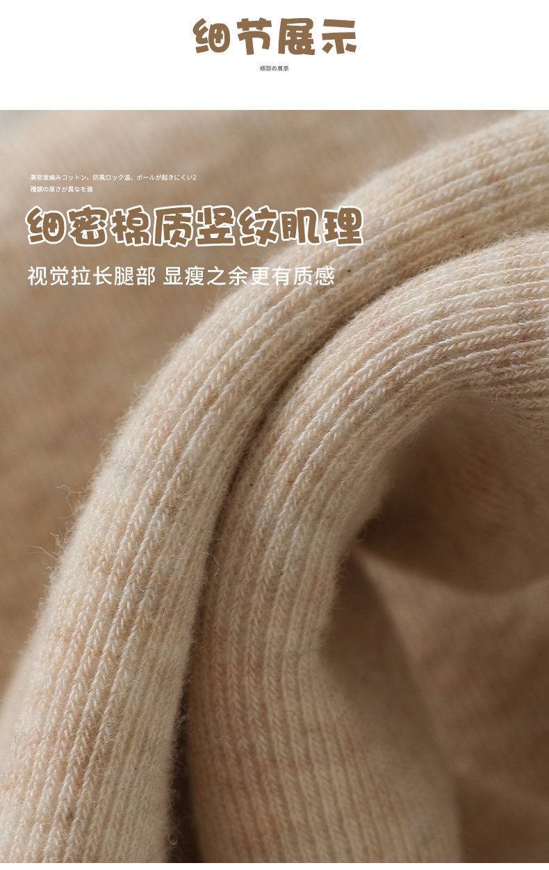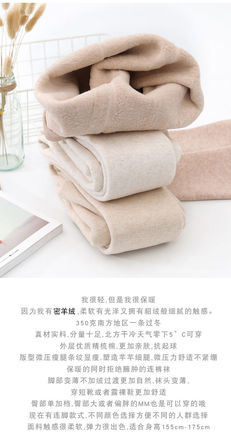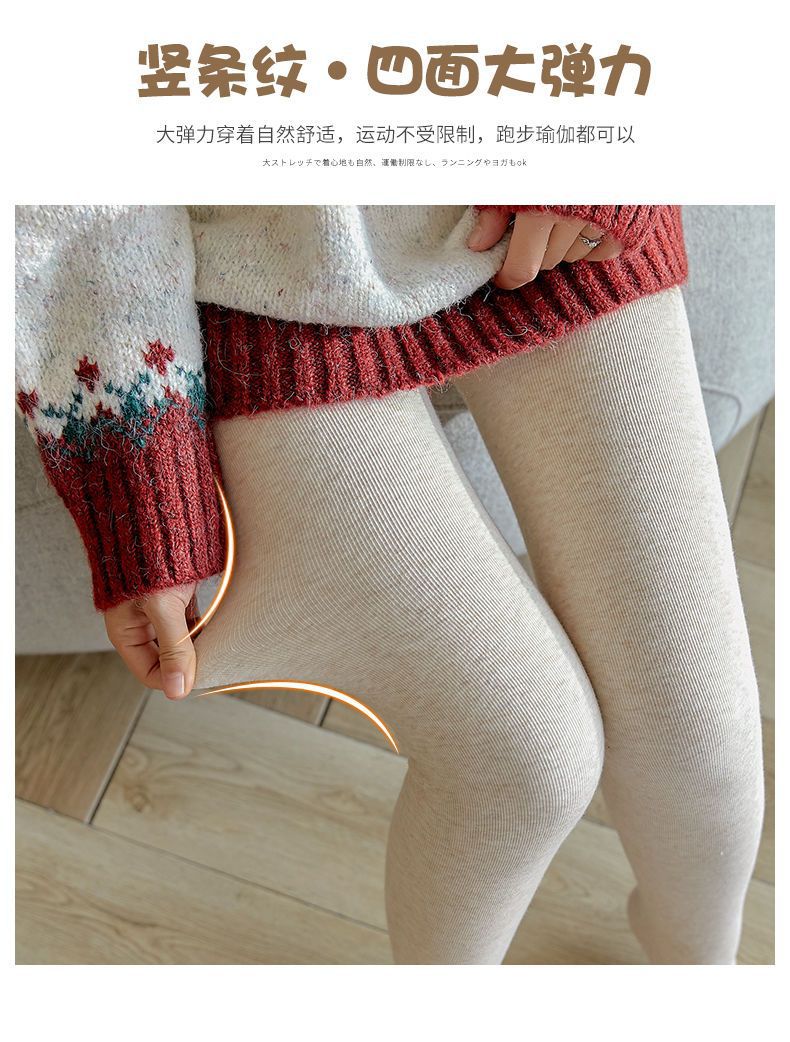 カシミヤの底のズボンの女性のベルベットの厚いズボンの靴下の春秋冬の系のオート麦の白い薄い色の縦の紋様の保温のズボンはやせています。