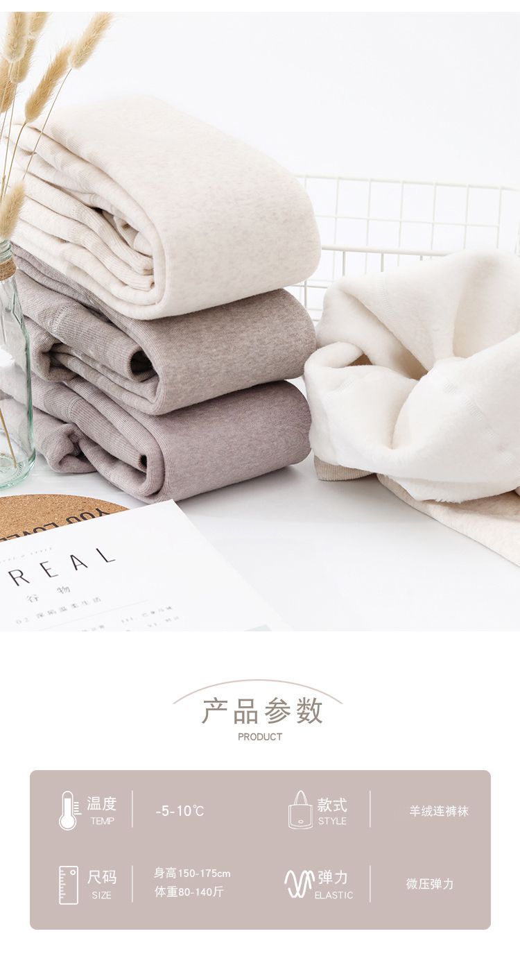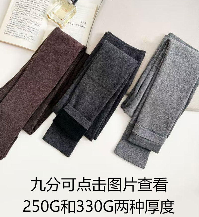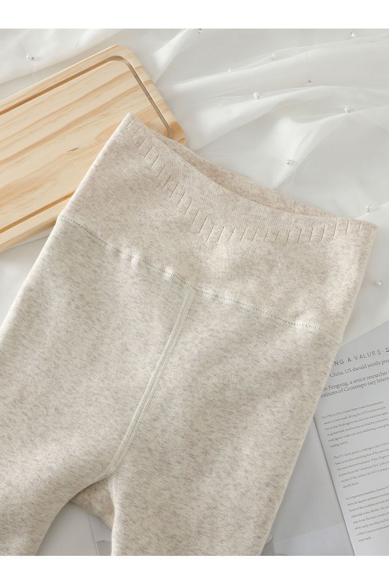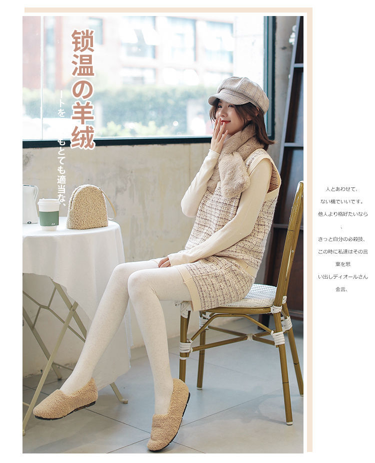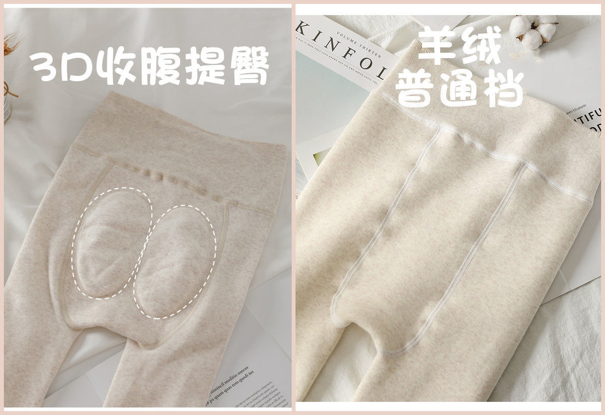 カシミヤの底のズボンの女性のベルベットの厚いズボンの靴下の春秋冬の系のオート麦の白い薄い色の縦の紋様の保温のズボンはやせています。